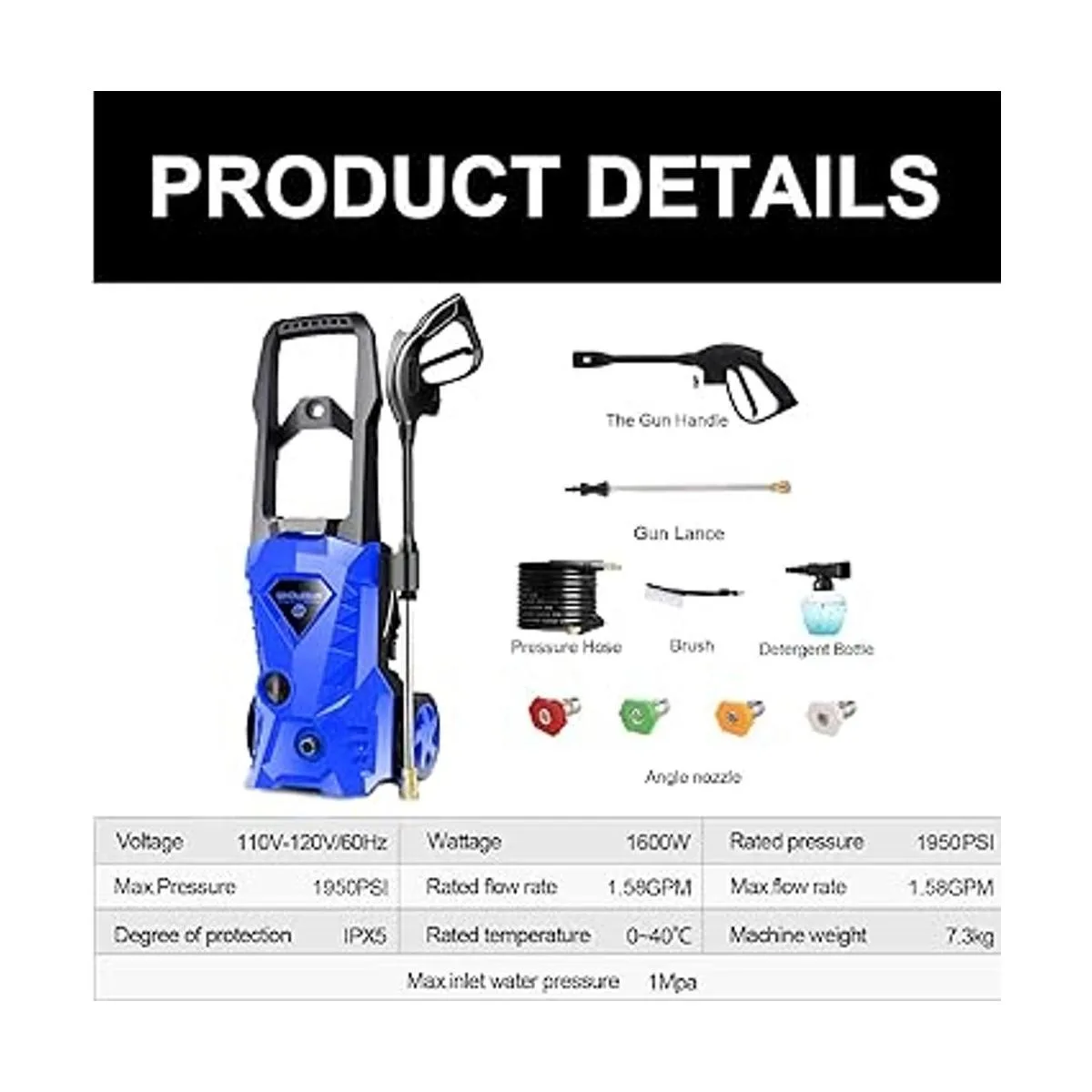 Lavadora eléctrica a presión 2.4GPM WHOLESUN 3000PSI. Lavadora eléctrica 1600W. Máquina limpiadora de alta presión con 4 boquillas, cañón de espuma. Lo mejor para limpiar hogares, autos, calzadas, patios
