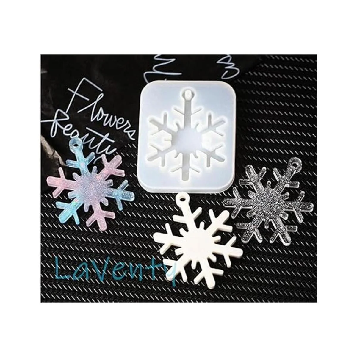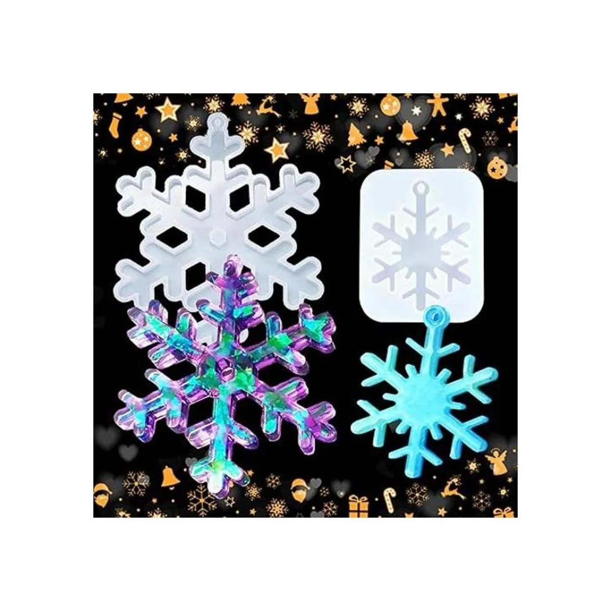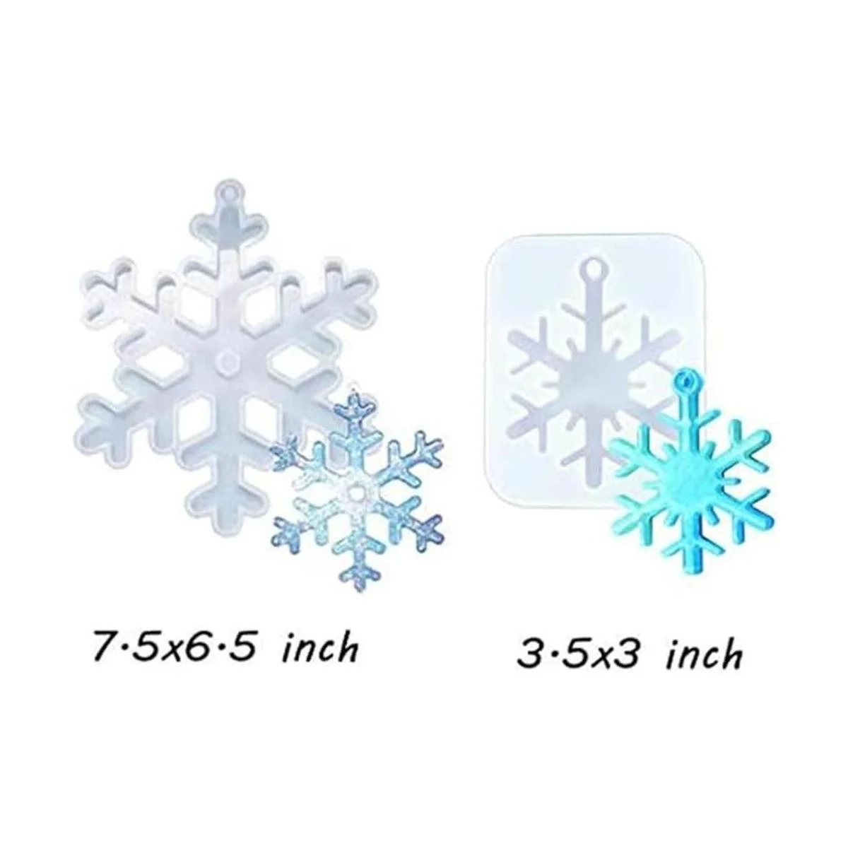 LaVenty 2 moldes de resina de copo de nieve de invierno, molde de resina de gran tamaño de copo de nieve de resina molde de adorno de Navidad DIY bolsa etiqueta llavero