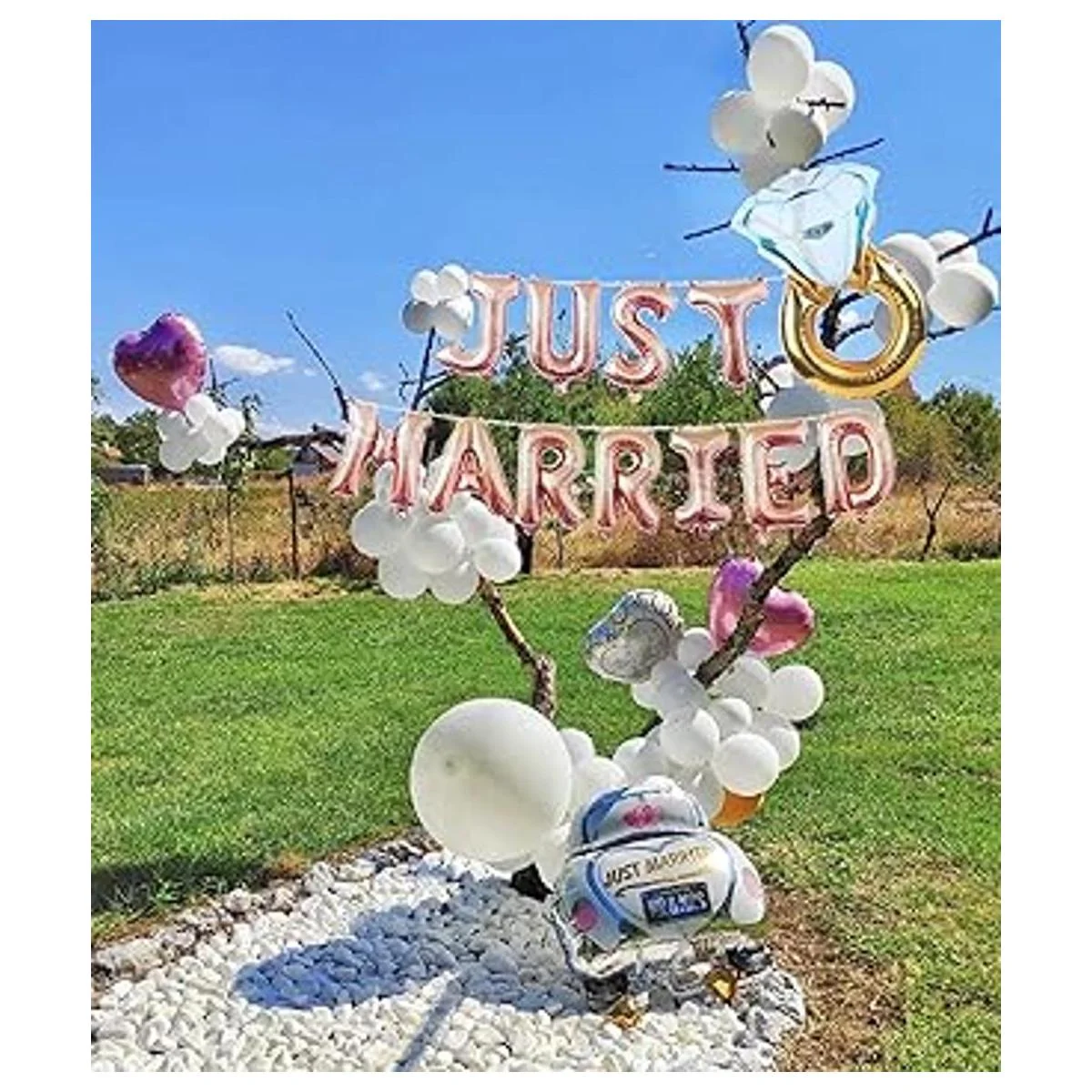 El paquete incluye: 10 globos, 1 globo recién casado, 1 globo de anillo