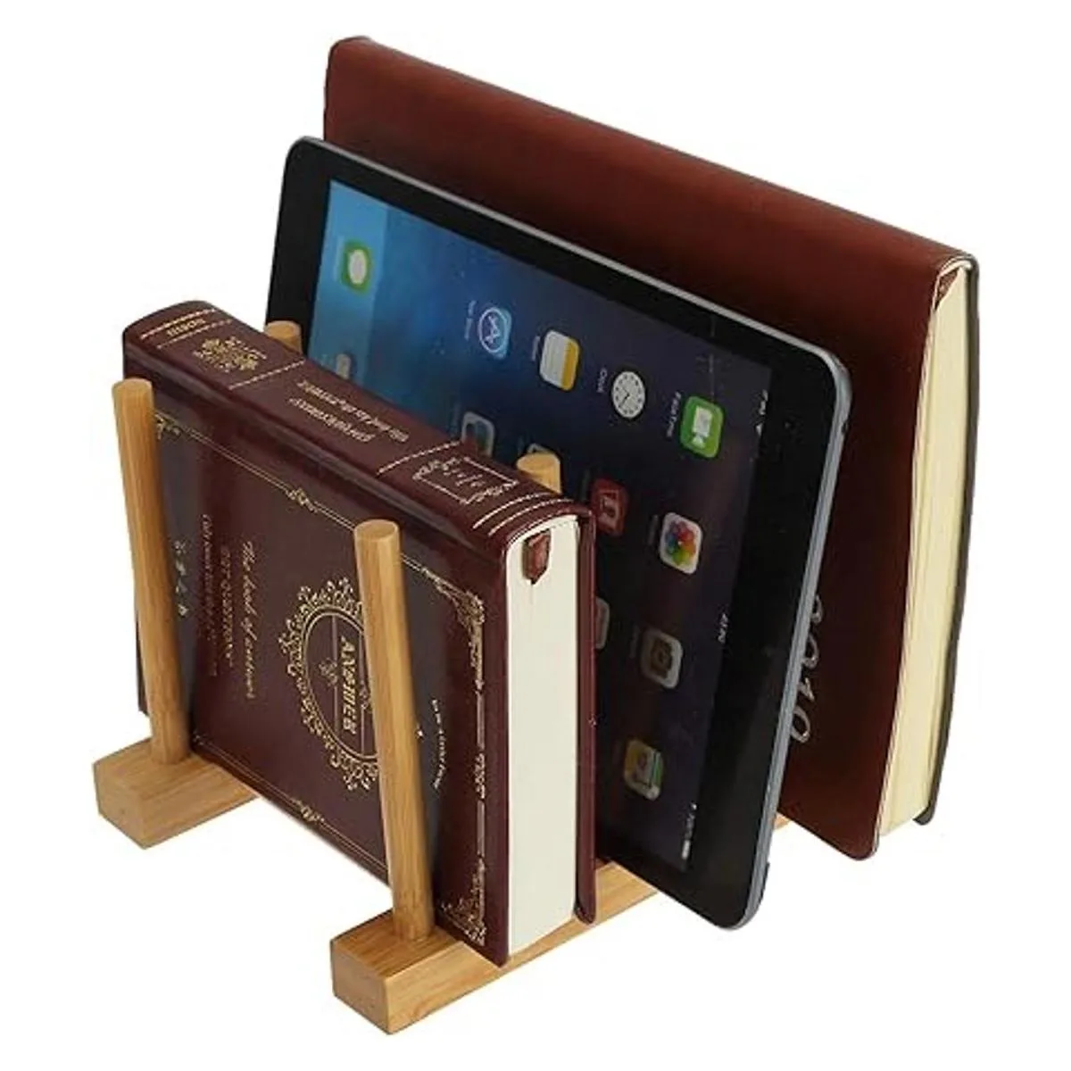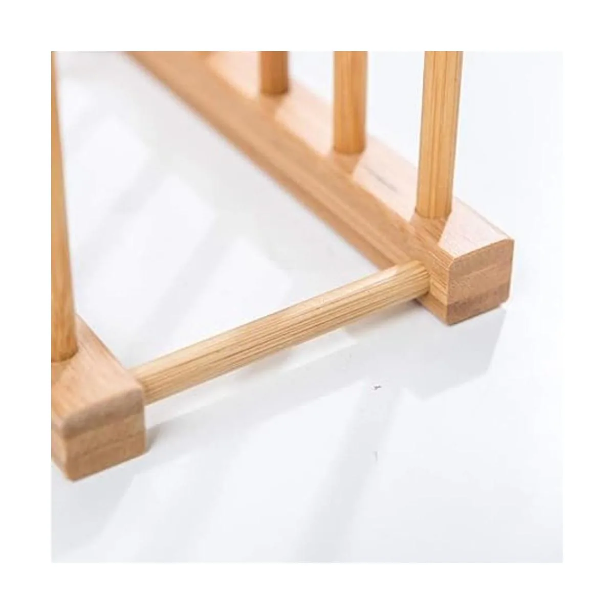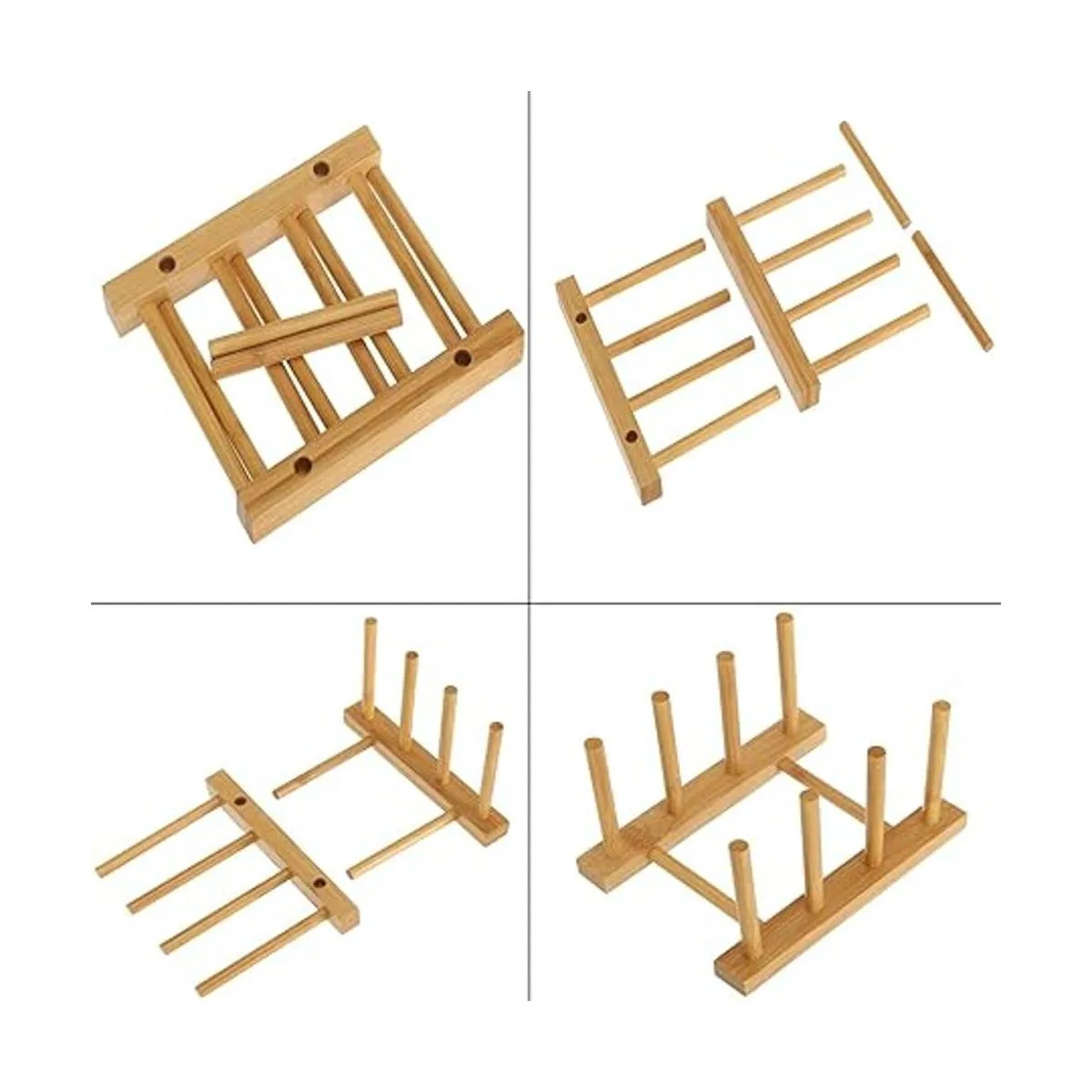 Lawei Juego de 4 estantes de bambú para platos 3 ranuras