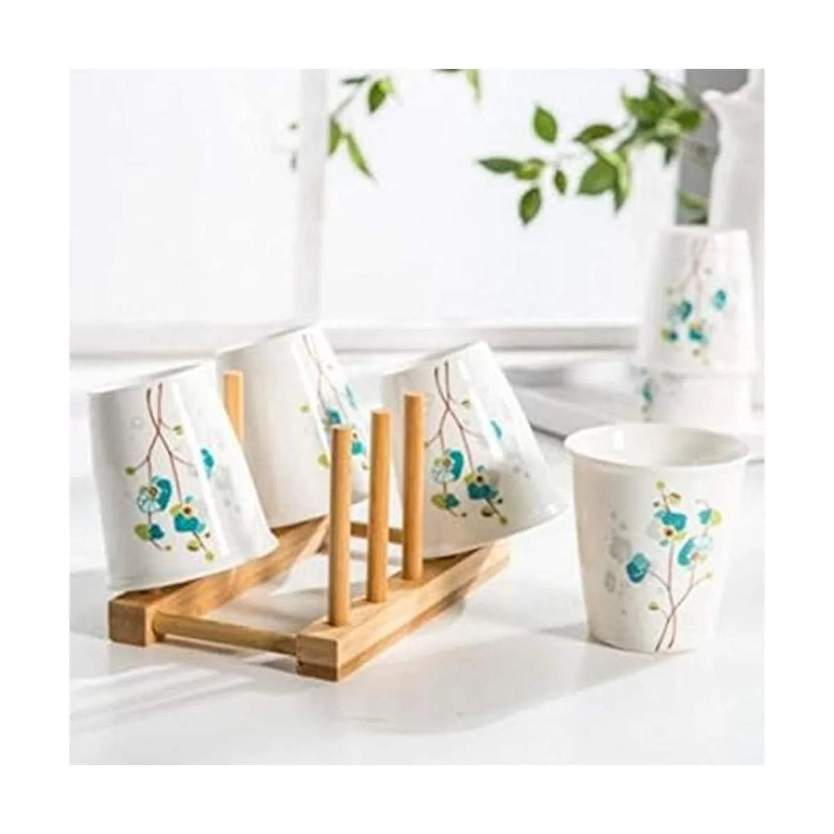 Juego de 4 escurridores de bambú, cada estante mide 6.3 x 4.8 x 4.7 pulgadas, un montón de 3 ranuras, el espacio entre las ranuras es de 1.3 pulgadas