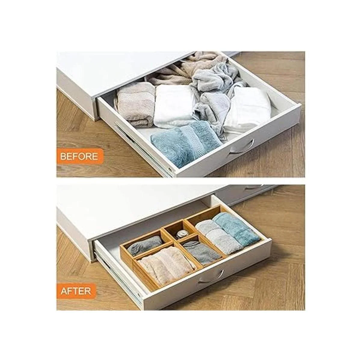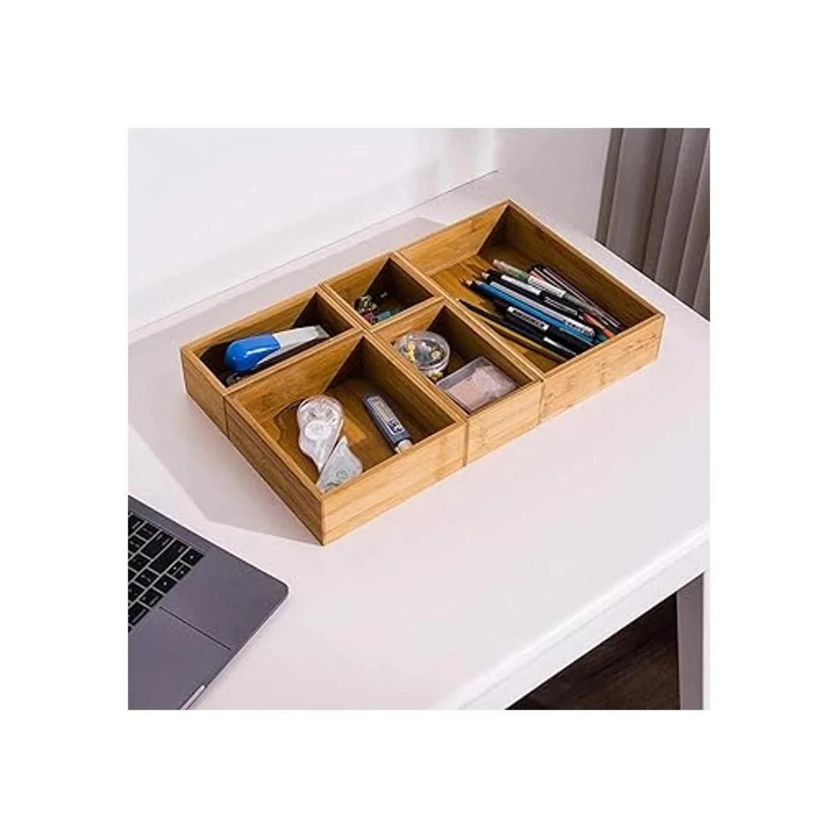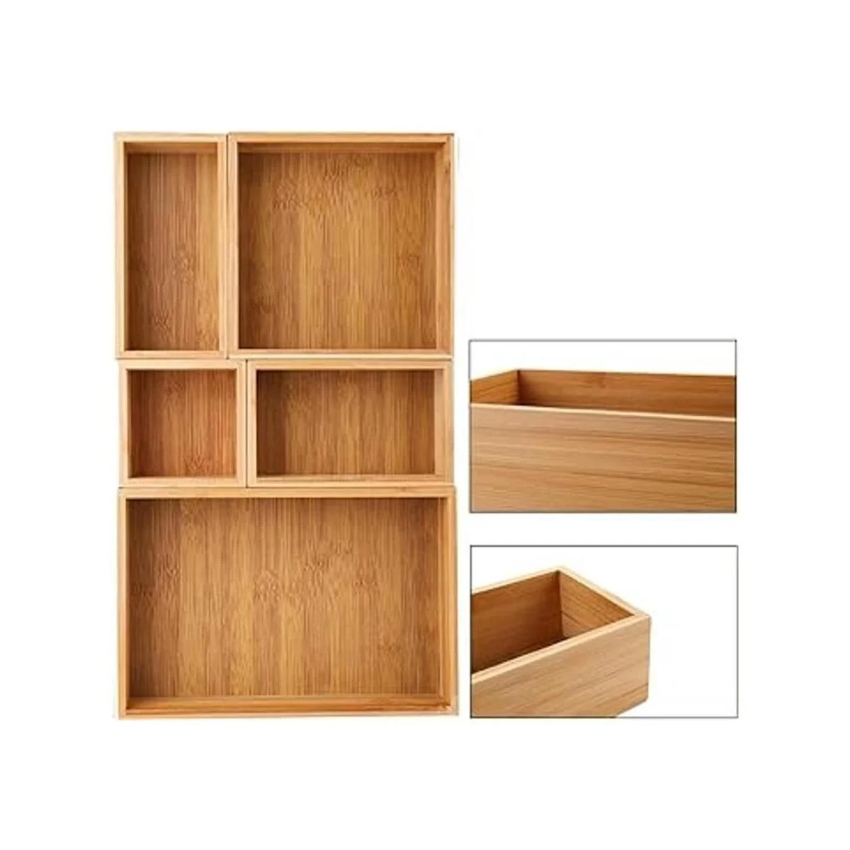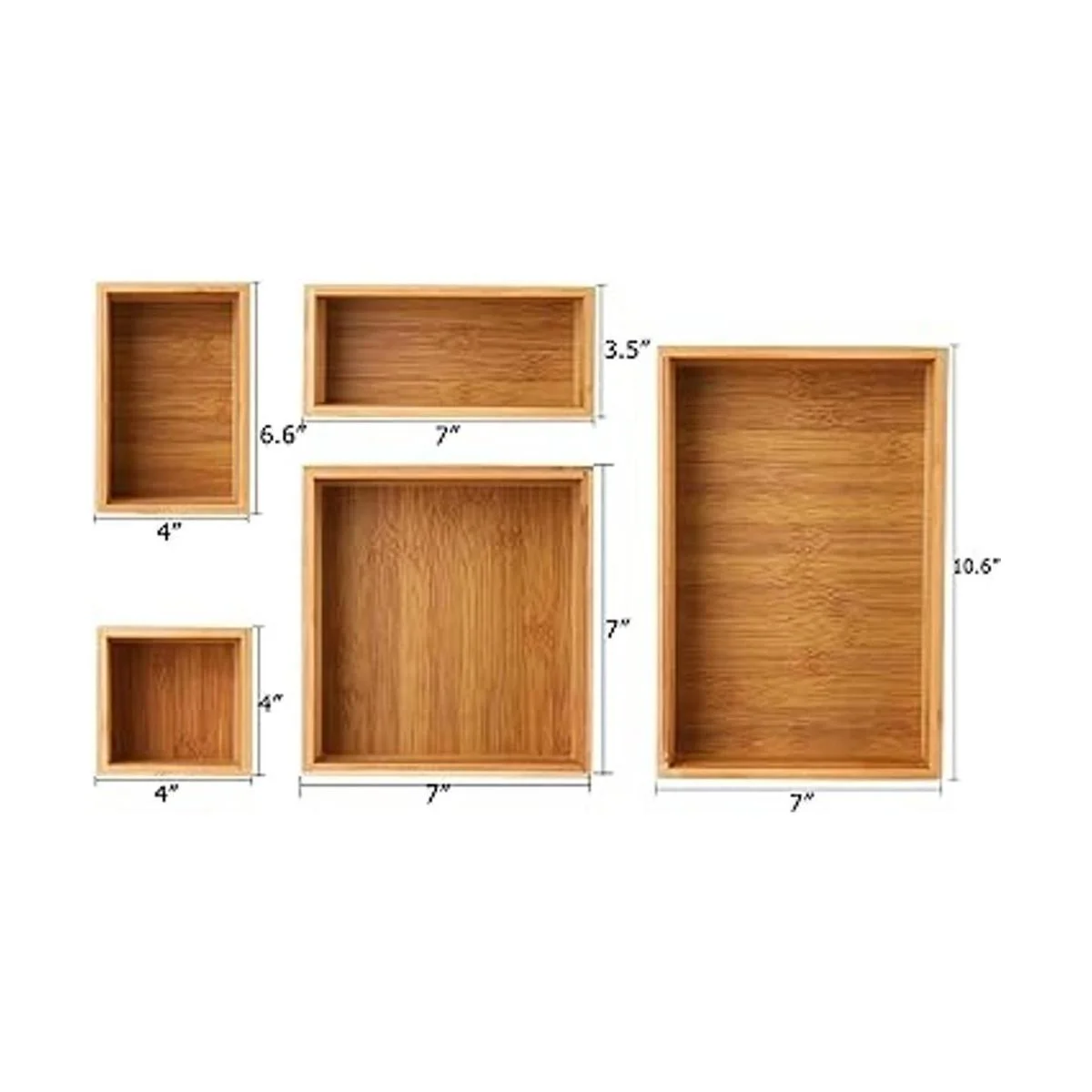Lawei Juego de 5 cajas organizadora de cajones de bambú, kit de caja de almacenamiento de escritorio, contenedores de almacenamiento de cajones para oficina, cocina, dormitorio, habitación de los niños, manualidades, costura