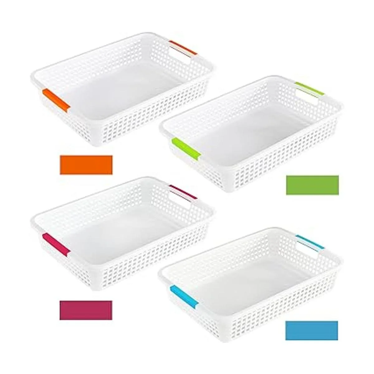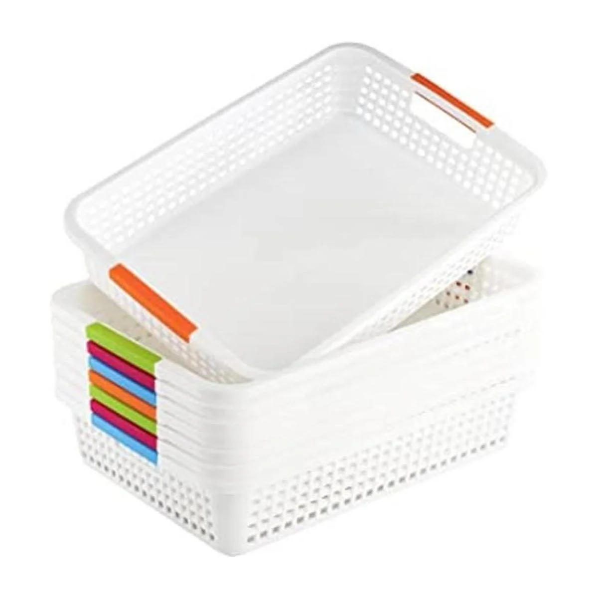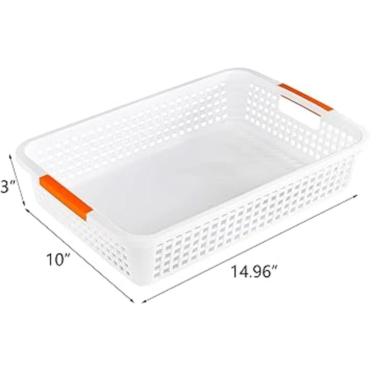Lawei Paquete de 8 cestas grandes de plástico con asa 15 x 10 x 3 pulgadas Canasta organizadora de despensa de almacenamiento de papel de escritorio para organización, encimeras, gabinetes, dormitorios, baños