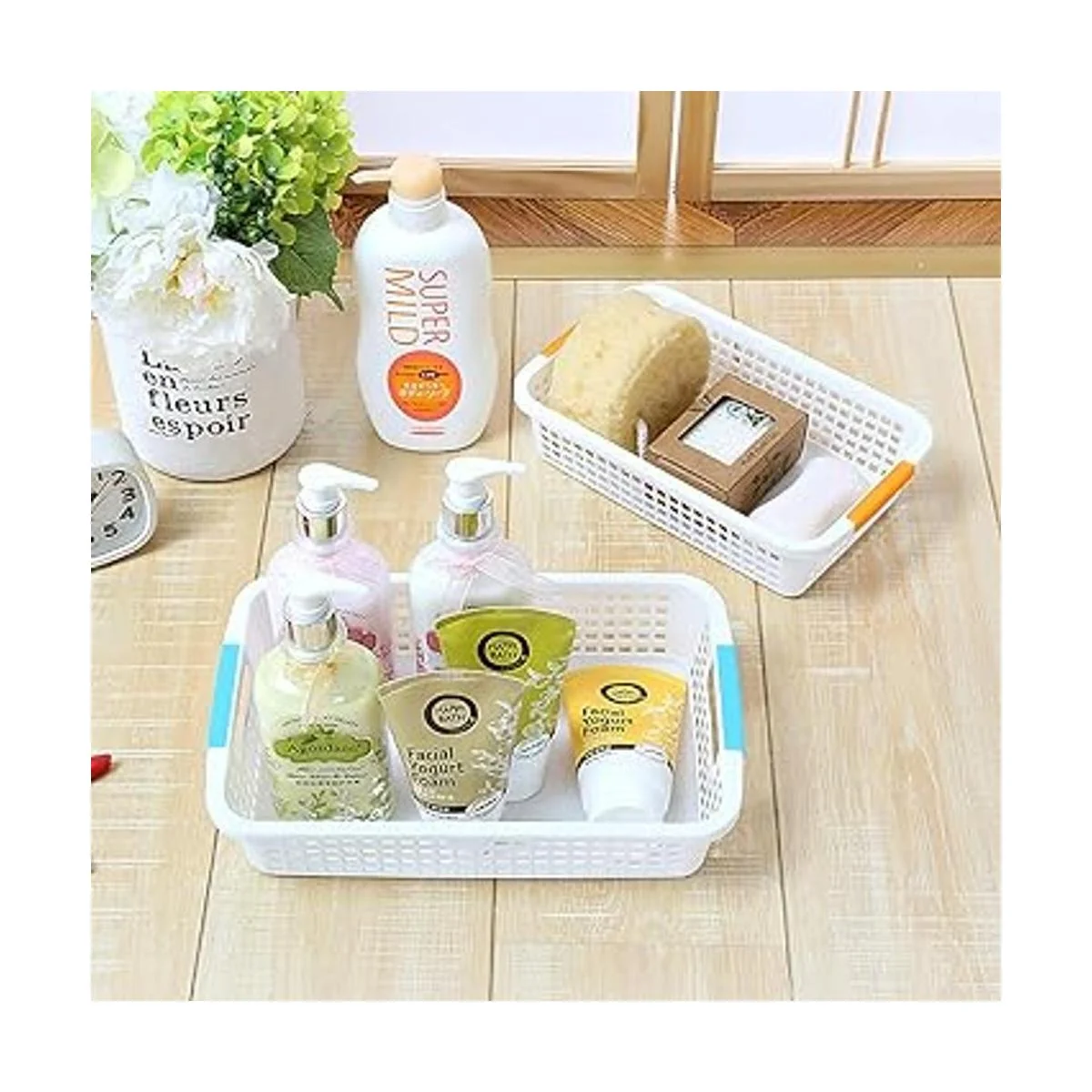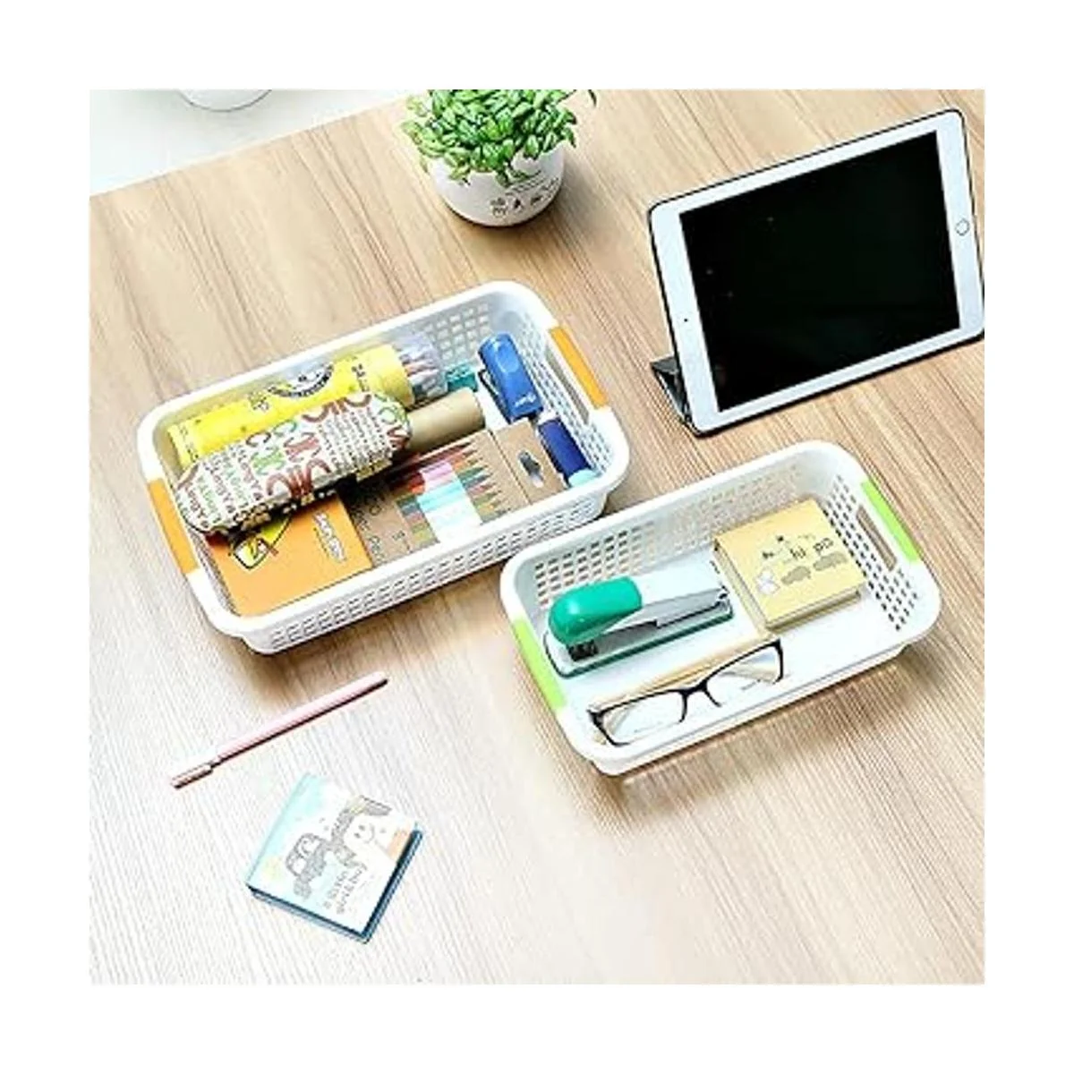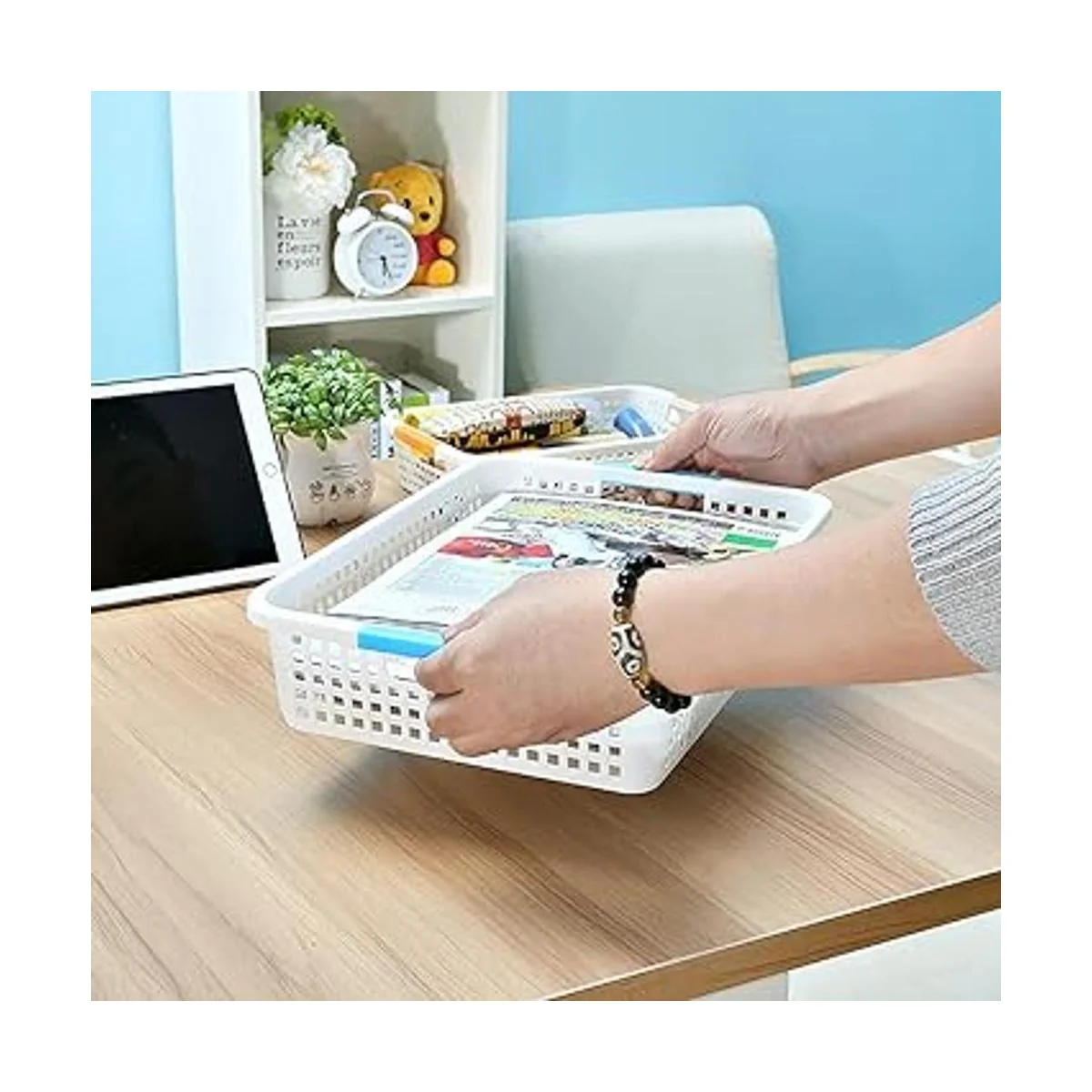 Lawei Paquete de 8 cestas grandes de plástico con asa 15 x 10 x 3 pulgadas Canasta organizadora de despensa de almacenamiento de papel de escritorio para organización, encimeras, gabinetes, dormitorios, baños