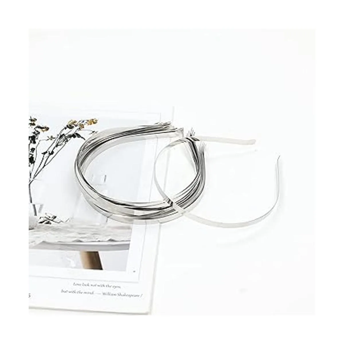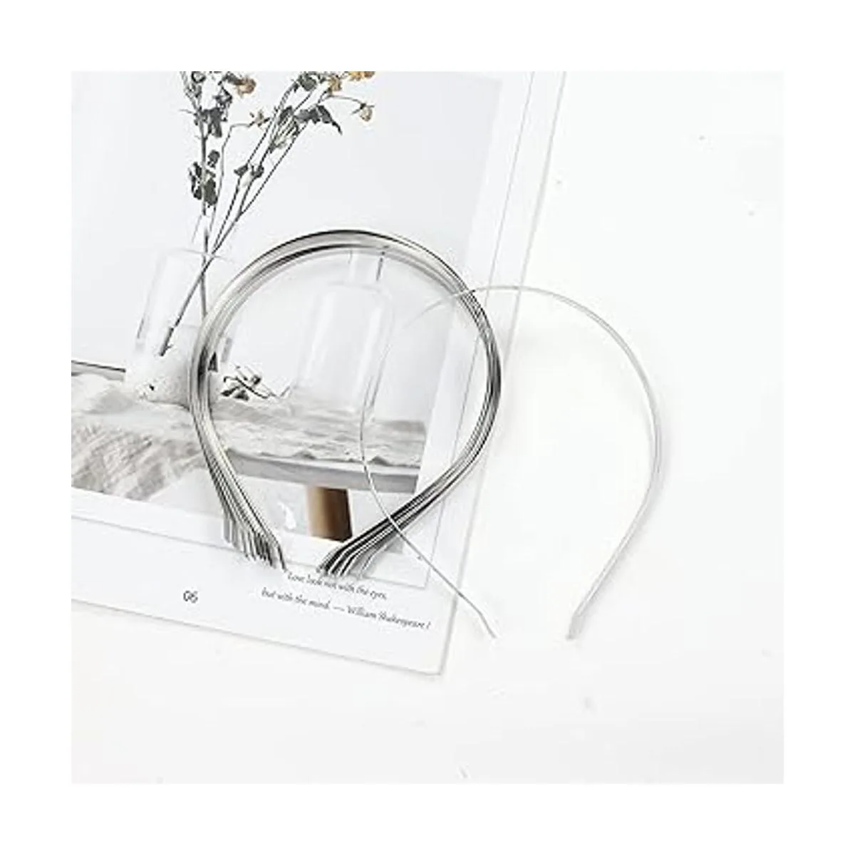 Lawie Paquete de 20 diademas de metal de alambre duro a granel de 0.276 in, delgada, plateada, color negro, liso, en blanco, base de bandas para el cabello, tiara, accesorios de manualidades para mujeres plata