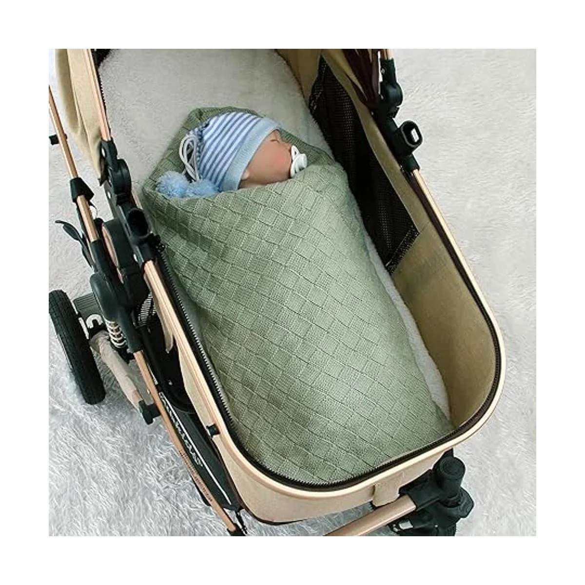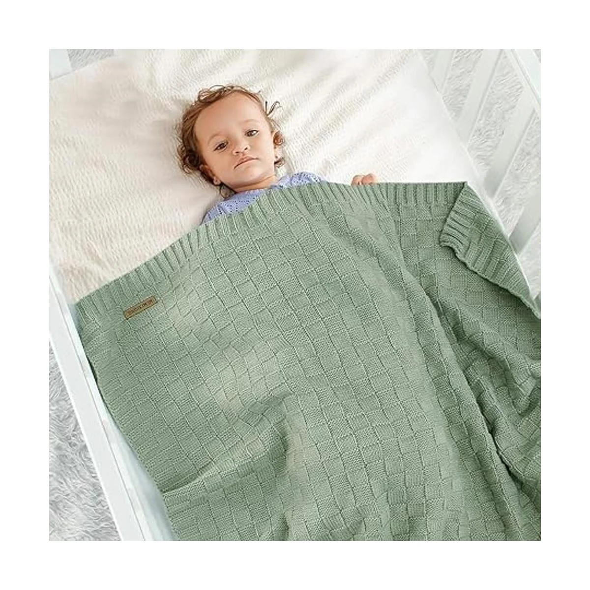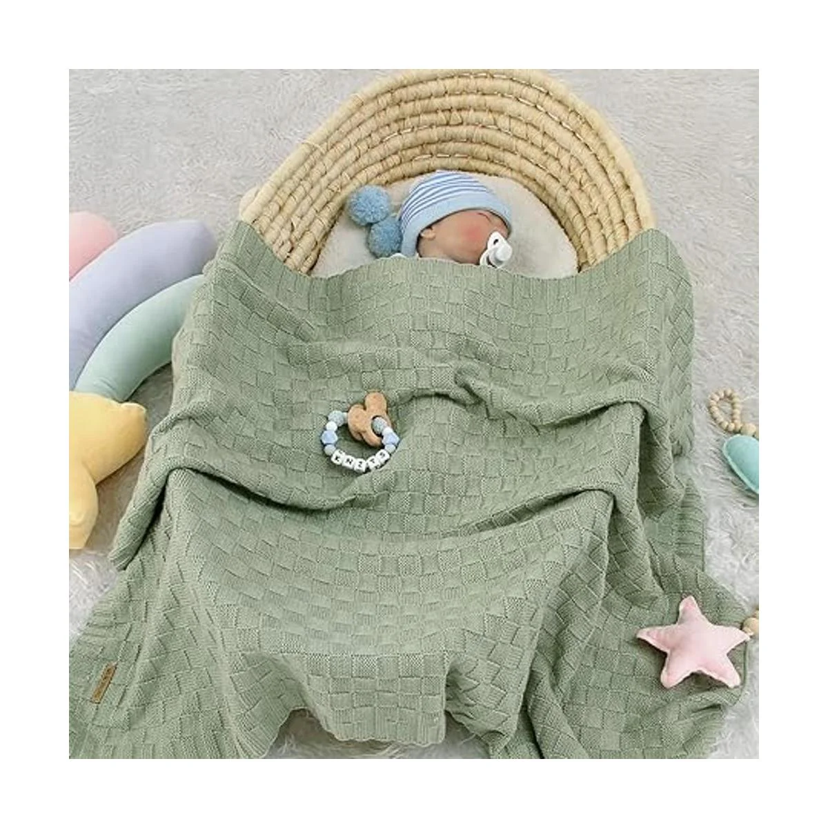 LAWKUL Manta de punto trenzado para bebé, manta verde para bebé, manta celular segura a ganchillo, para recién nacidos, tamaño 40 x 30 pulgadas