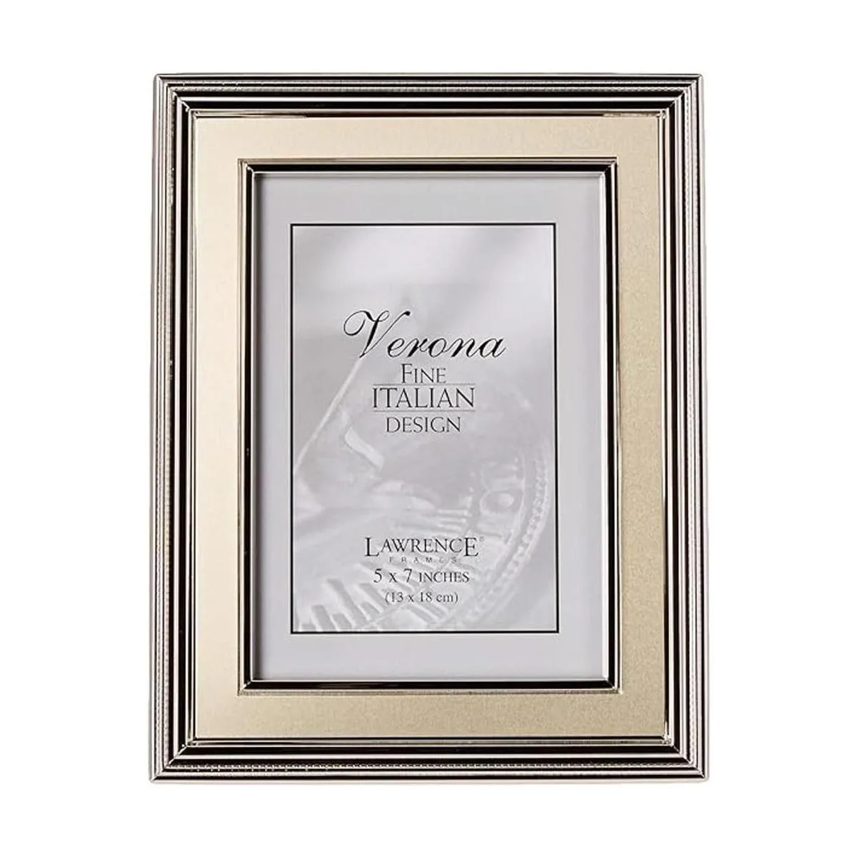 Lawrence Frames Marco de fotos de metal chapado en plata de 5 x 7 pulgadas, panel interior dorado cepillado