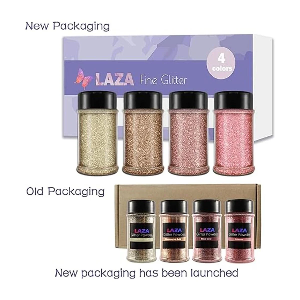 Laza Polvo de purpurina ultrafina de primavera, 4 colores de 10.8 fl oz, lentejuelas con purpurina artesanal, purpurina extrafina de PET de oro rosa para flores de resina, arte de uñas, vaso de epoxi, decoración, bodas, copas de vino, oro rosa