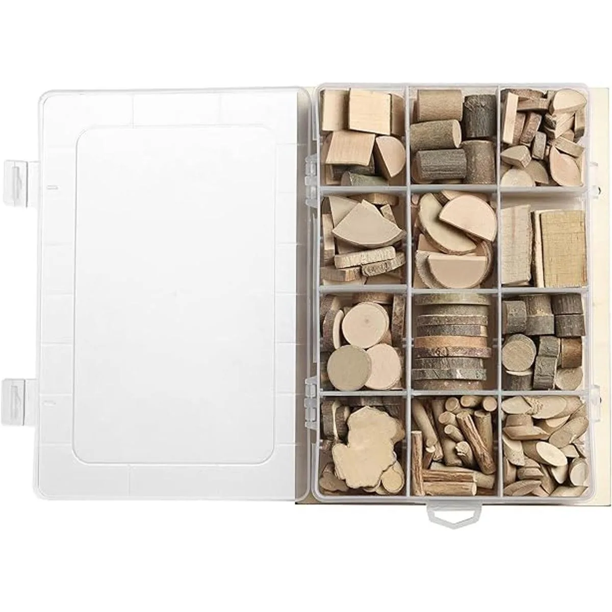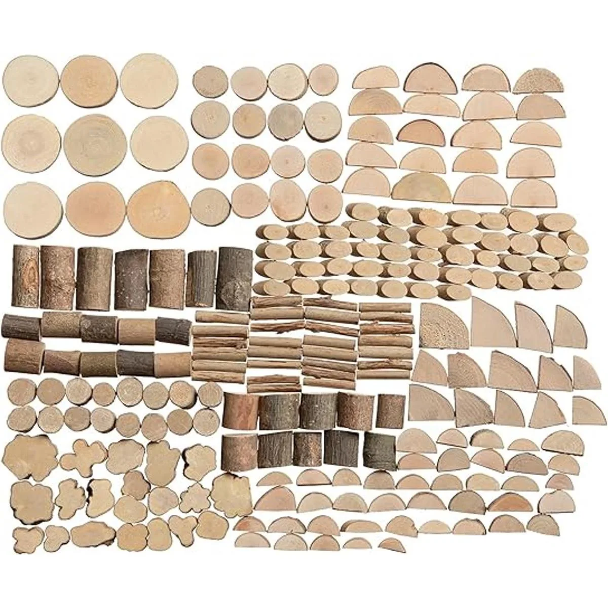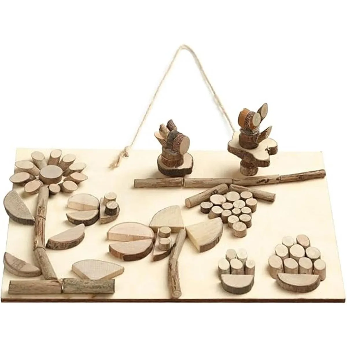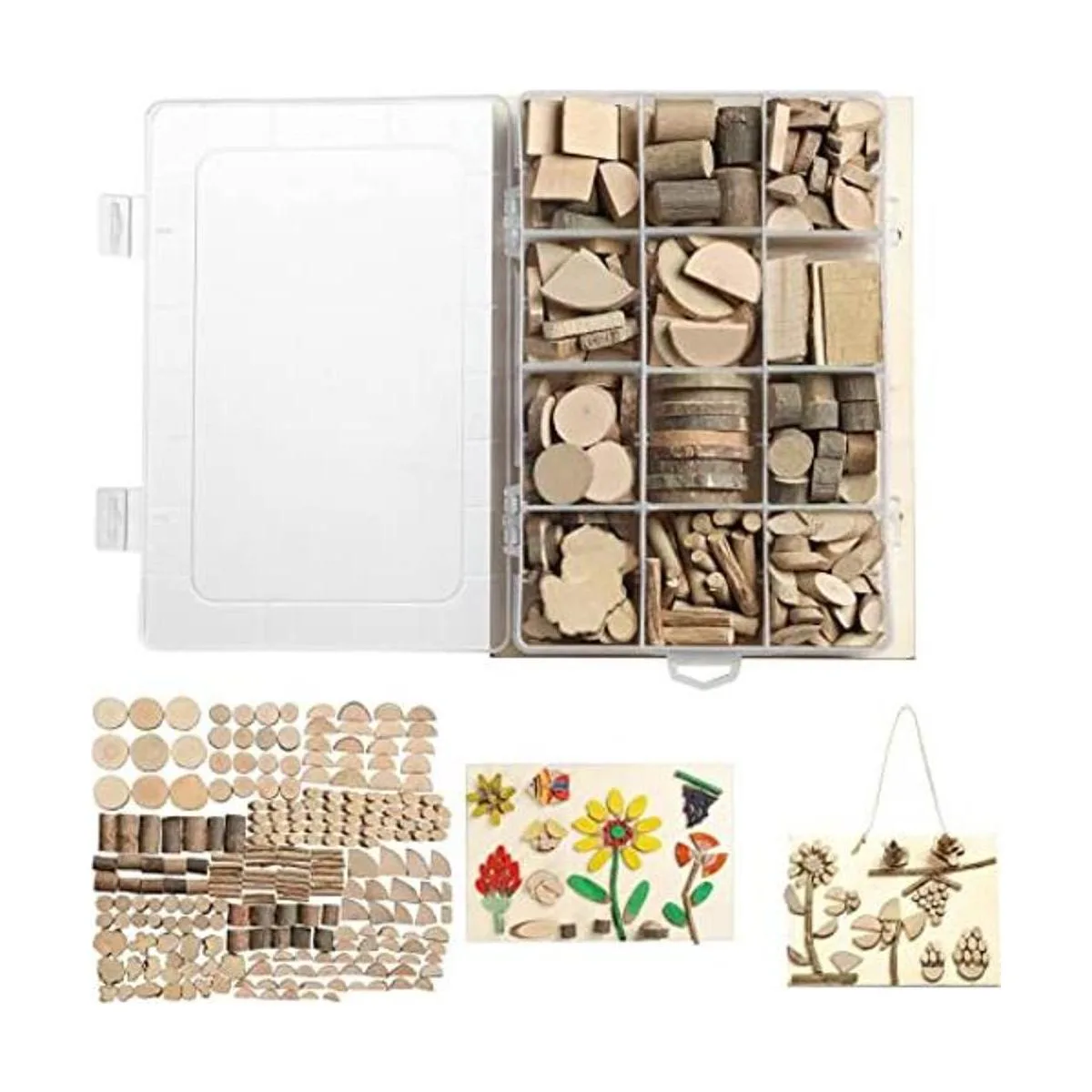 Creatividad ilimitada: hay 12 formas diferentes de rodajas de madera y ramas en la caja, los niños pueden hacer manualidades a voluntad, estimular su imaginación y creatividad, y crear manualidades de madera que pueden expresar su individualidad, para crear manualidades personalizadas, mejorar la creatividad de los niños y la coordinación ojomano