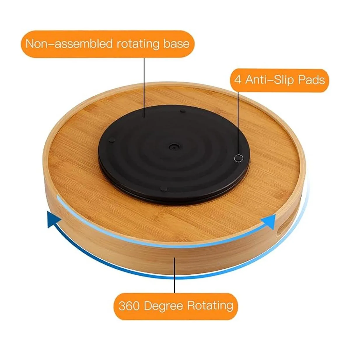Rotación de 360 grados: diseñado para una rotación suave de 360 grados para un fácil acceso desde cualquier asiento de la mesa. Con solo un simple giro, puedes acceder y llevar el artículo sin esfuerzo. Hay 4 almohadillas antideslizantes en la parte inferior del susan perezoso de madera para garantizar la estabilidad del tocadiscos al girar.