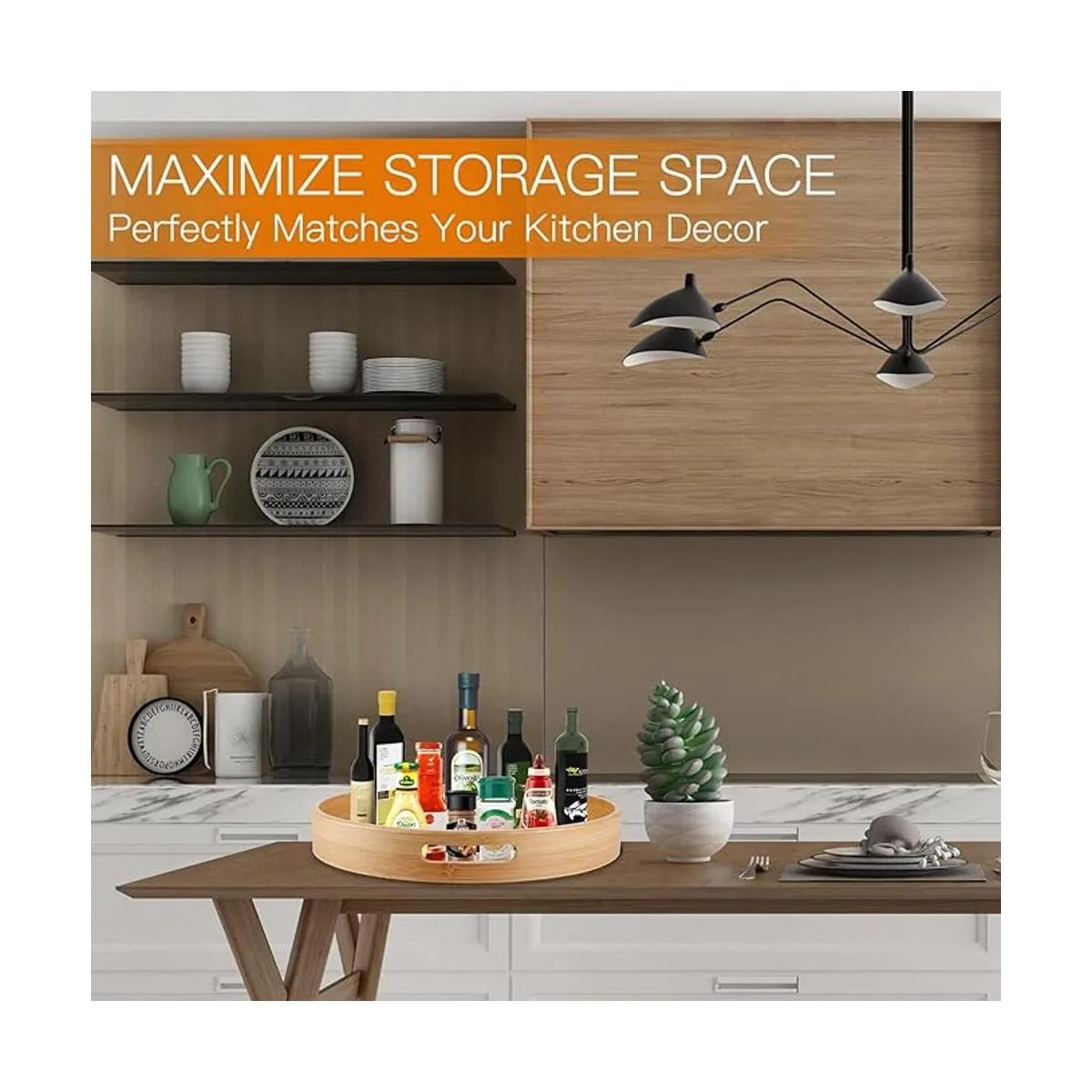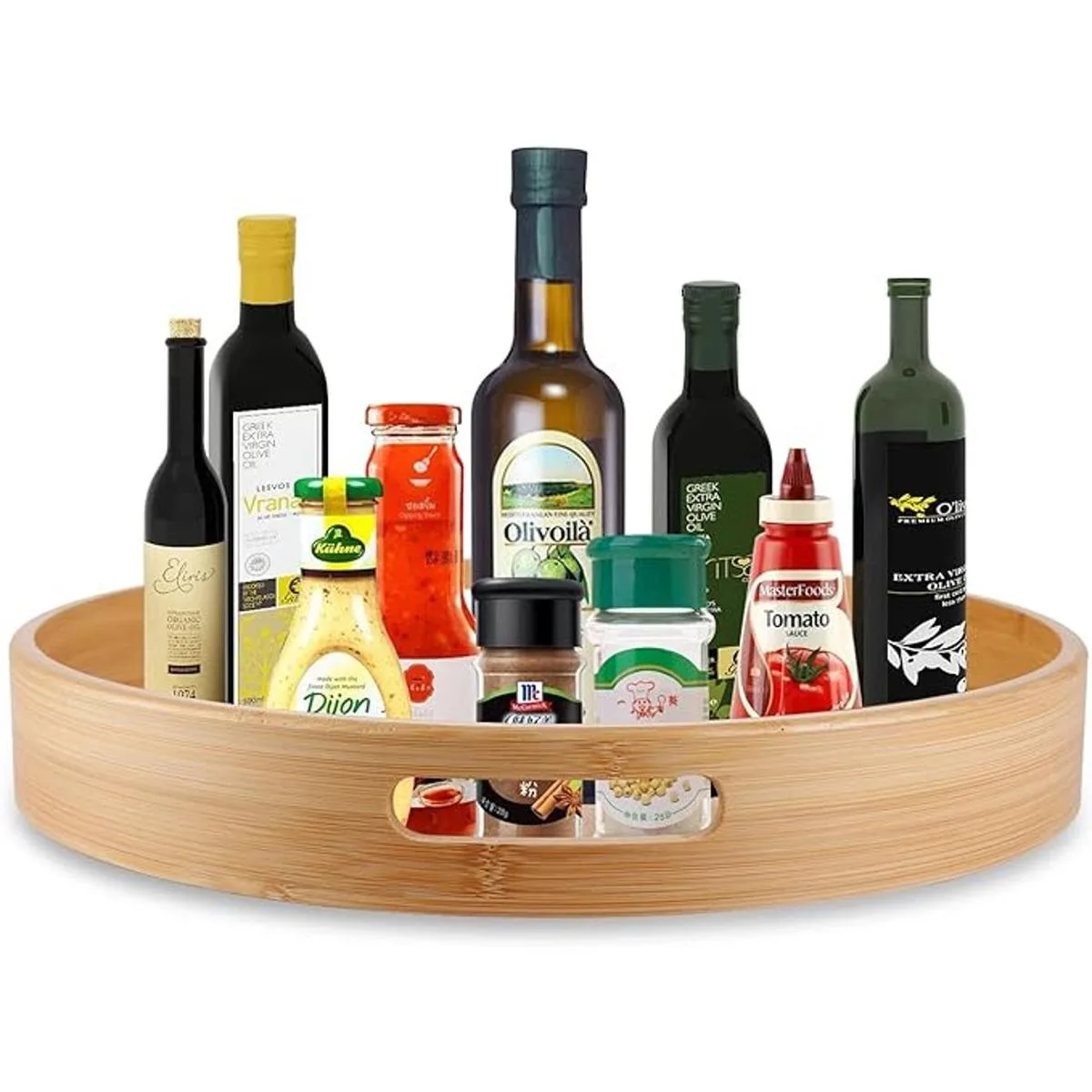 Lazy Susan Organizador de bambú Lazy Susan de 14 pulgadas para mesa, organizador de tocadiscos de cocina con asas dobles, organizador de especias giratorio de madera redonda para gabinete de encimera o despensa