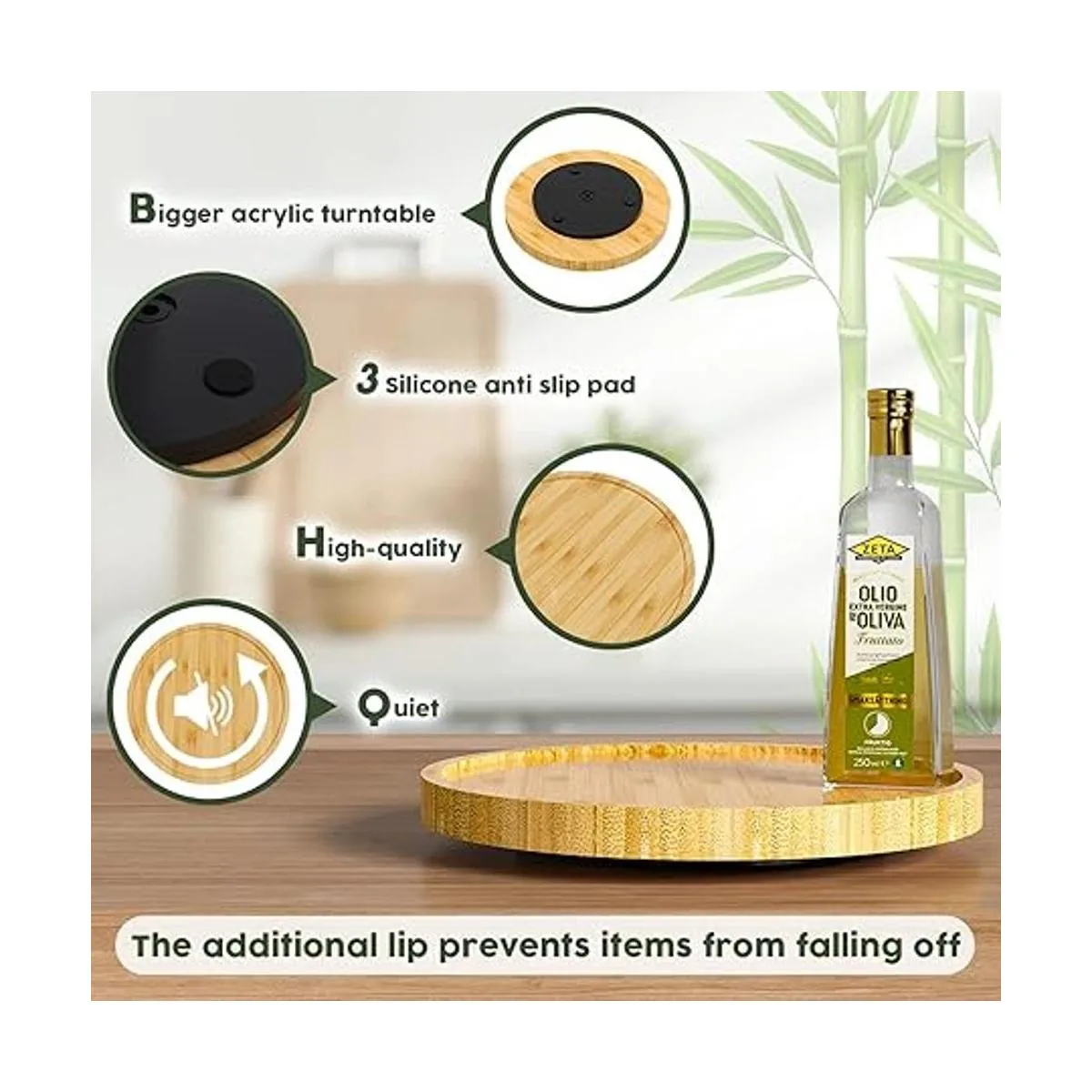 Alta calidad: organizador giratorio Lazy Susan hecho de bambú renovable. Respetuoso con el medio ambiente. El tamaño adecuado de 10 x 10 pulgadas hace que el armario, isla de cocina, mesa esté limpio y bien organizado