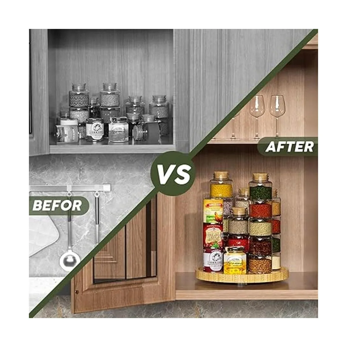 Valor: delicadamente hecho más duradero y más estable, color encantador, superficie lisa, fácil de limpiar, no necesita montaje; Lazy Susan se adapta perfectamente a la cocina. Su alta capacidad te permite ahorrar más espacio en la cocina limitada para que puedas poner más artículos