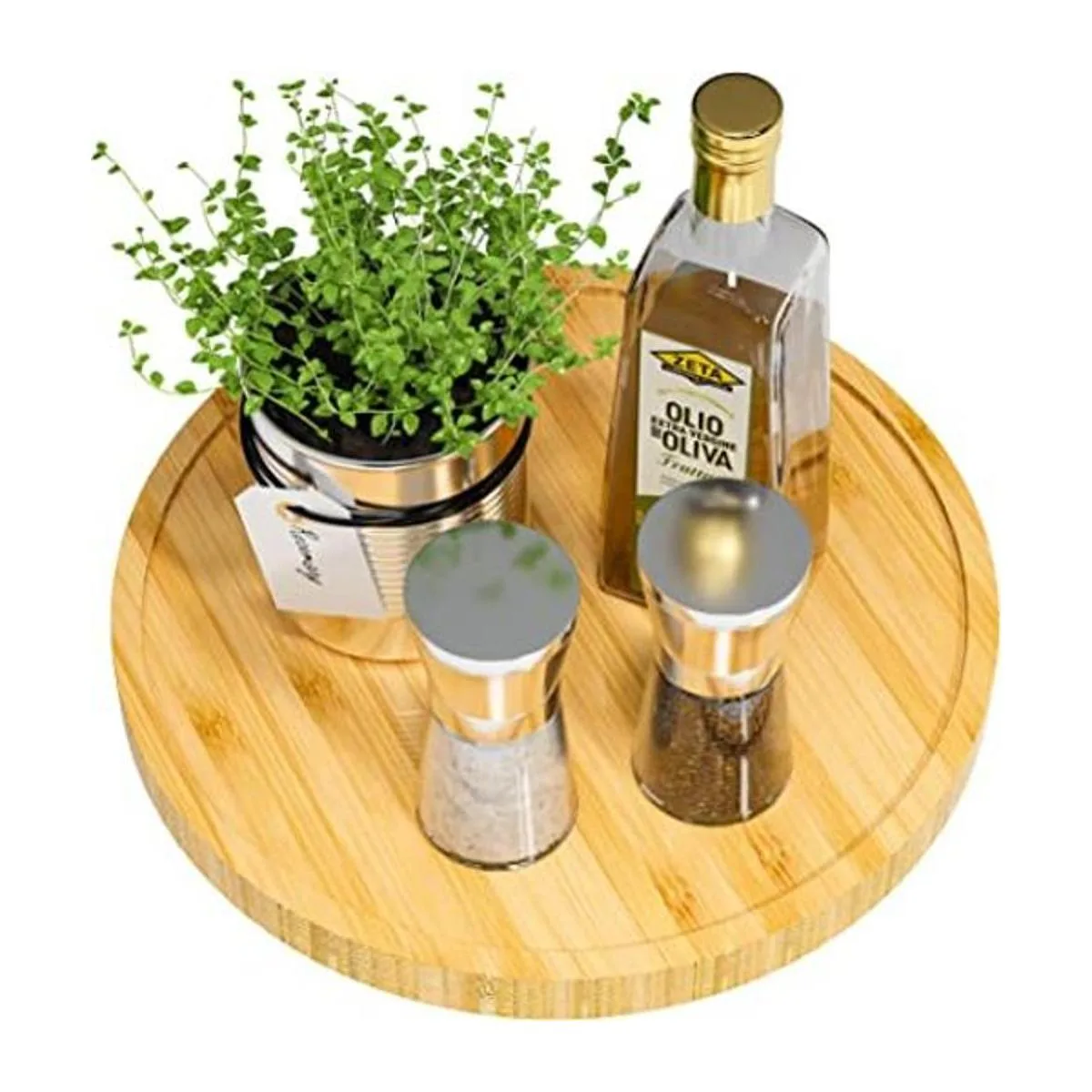 Lazy Susan Organizador de mesa giratoria de bambú antideslizante de 10 pulgadas para sal y pimienta aceite de oliva y especias junto a la estufa, Susan de madera para mesa o organizador de encimera de cocina