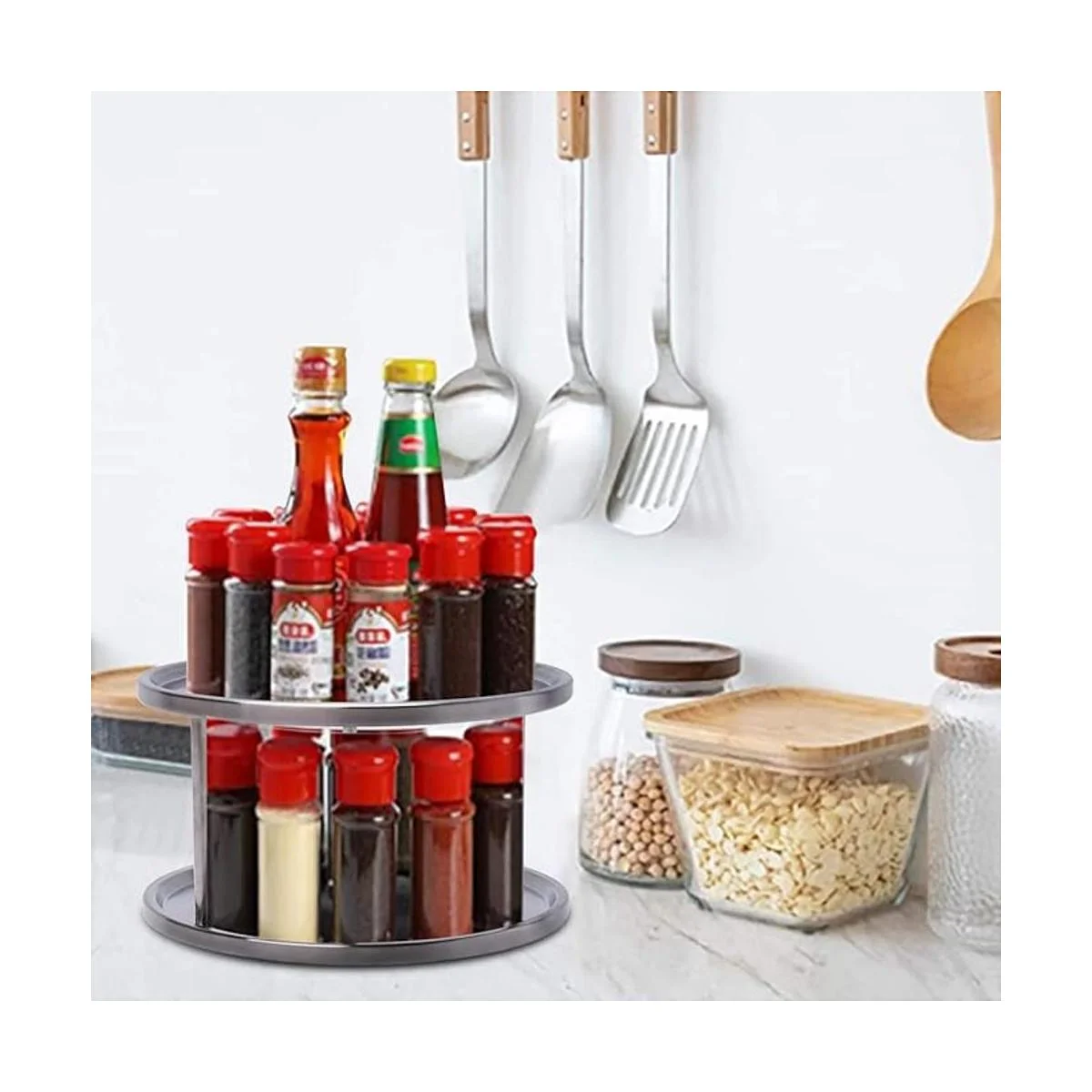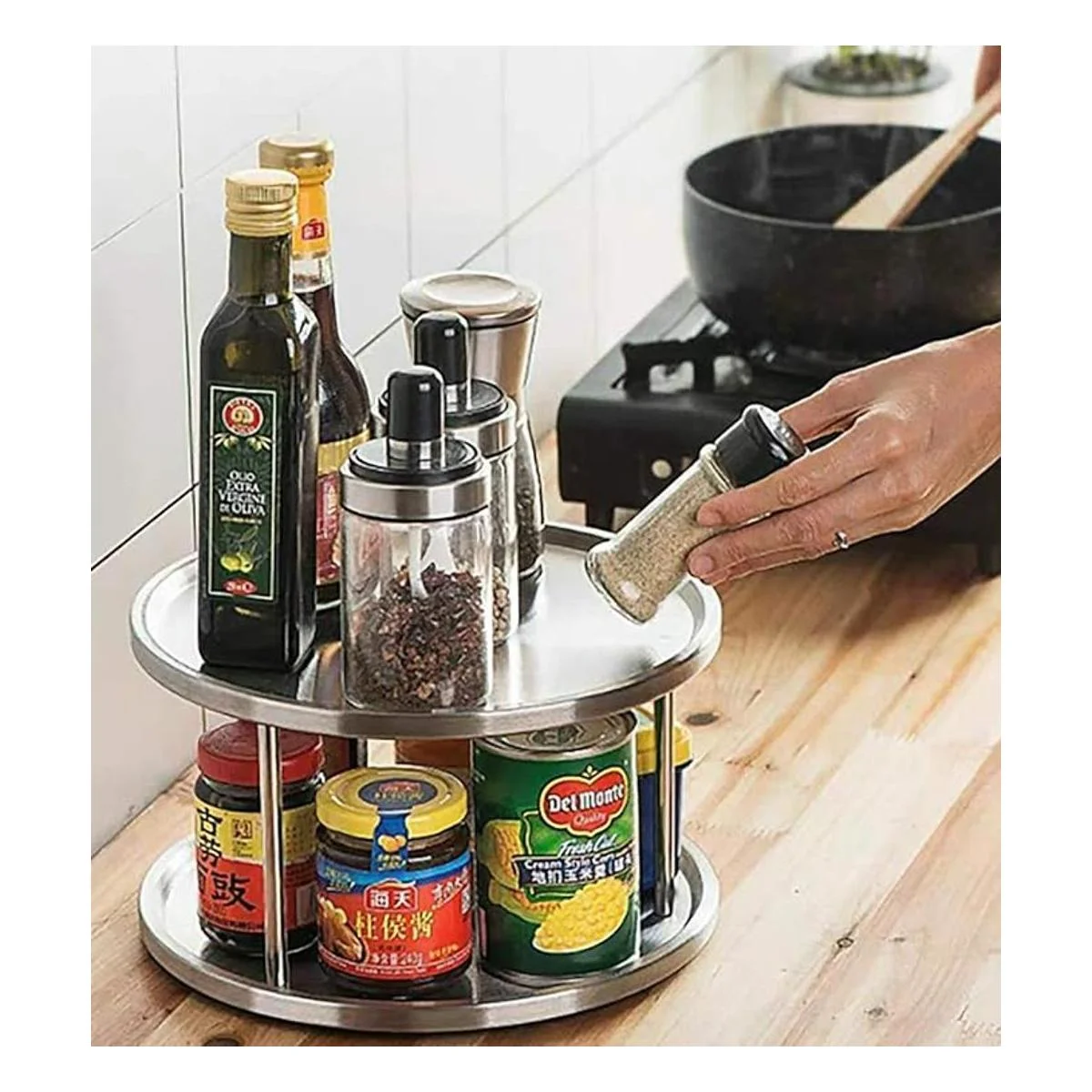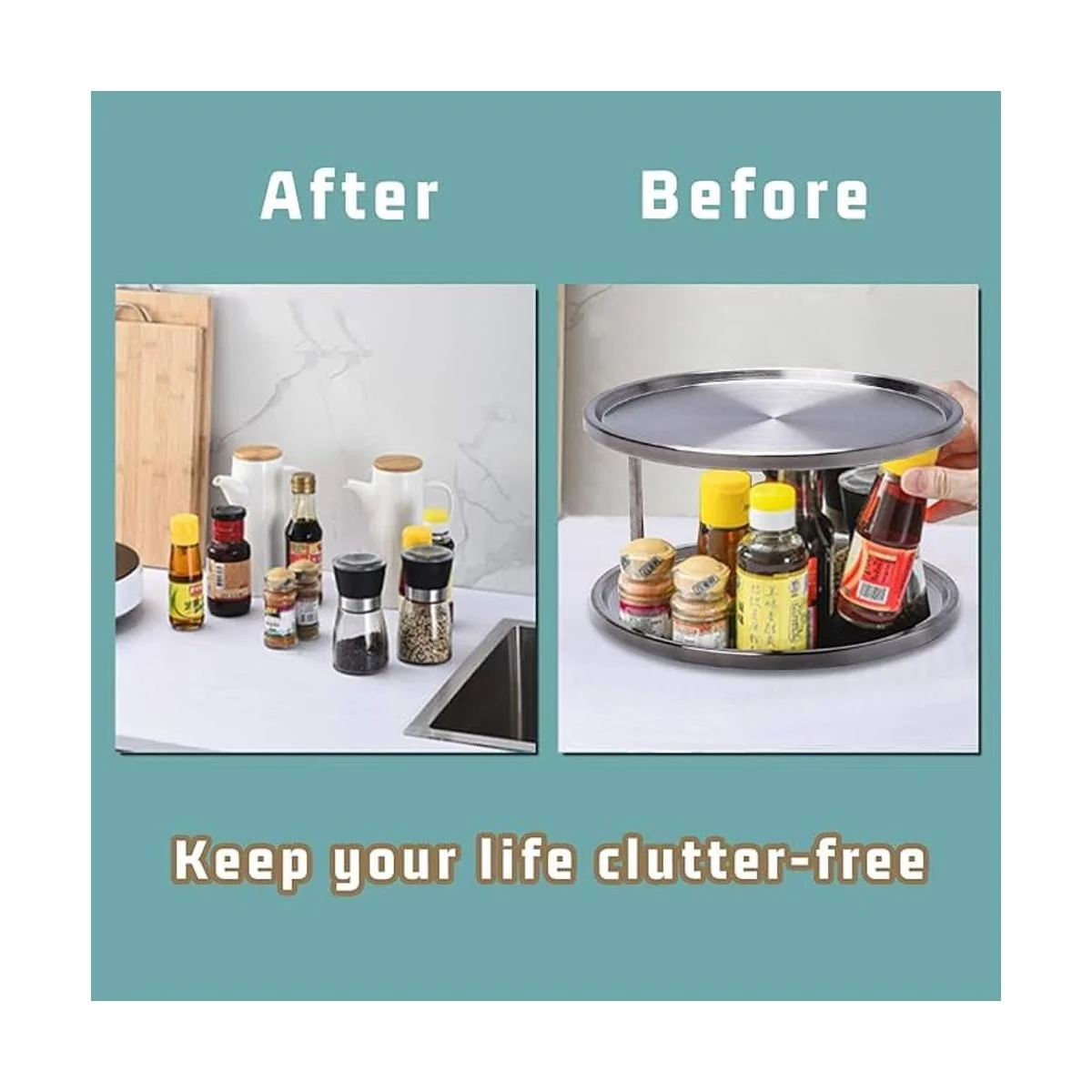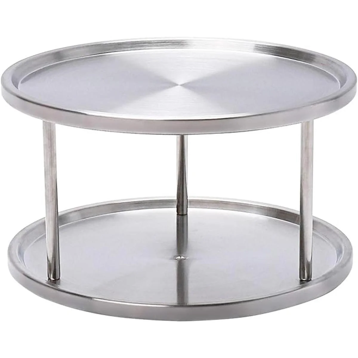 Lazy Susan Organizador de tocadiscos de 2 niveles, de acero inoxidable de 360 grados, bandeja organizadora de especias para cocina, baño, dormitorio, sala