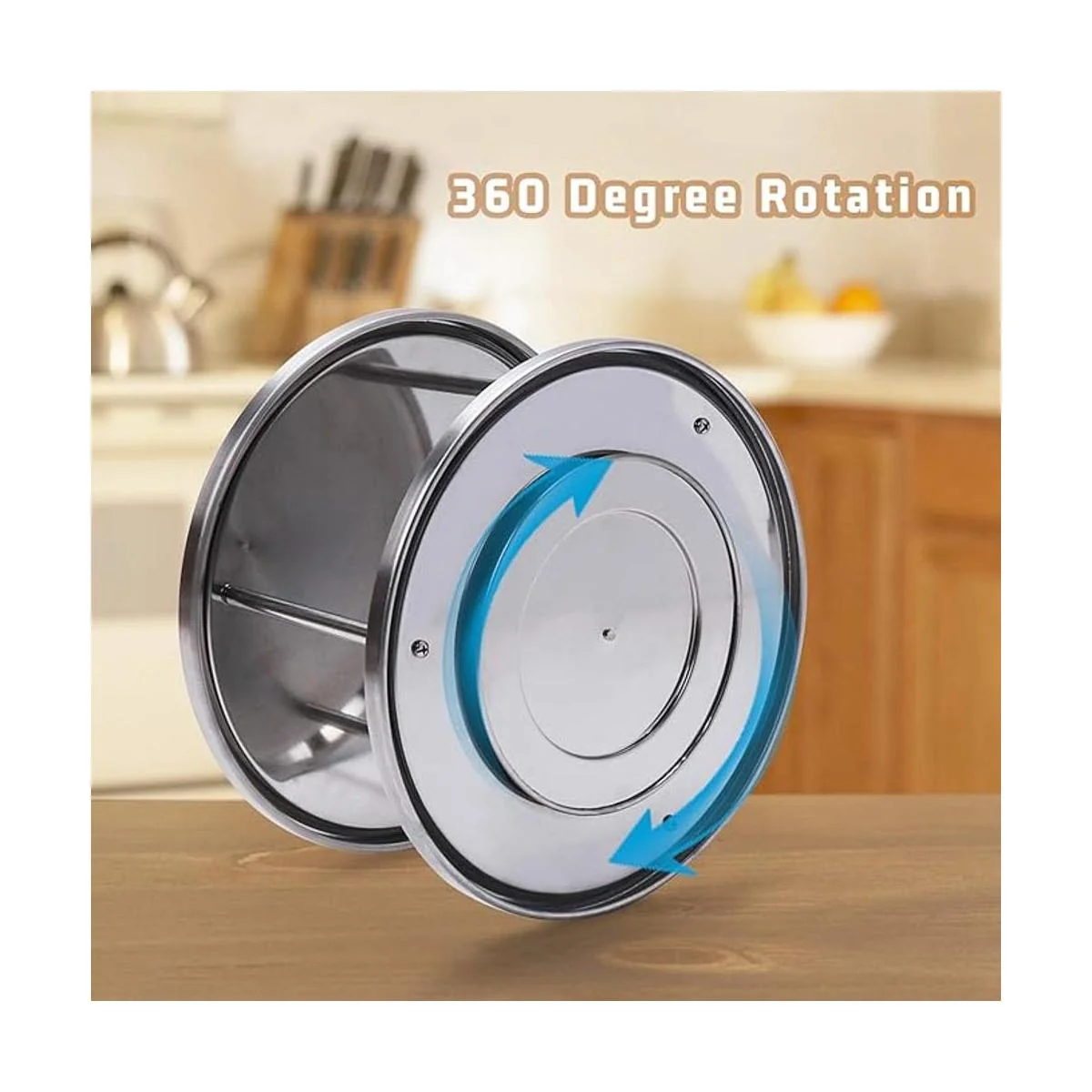 Material de alta calidad y duradero: hecho de acero inoxidable de alta calidad. Son resistentes a la corrosión y duraderos, fáciles de limpiar y de larga vida útil. Los bordes elevados evitan que se caigan mientras giras el organizador. Diseño antideslizante en la parte inferior del tocadiscos, lo que puede hacer que sea más estable al girar.