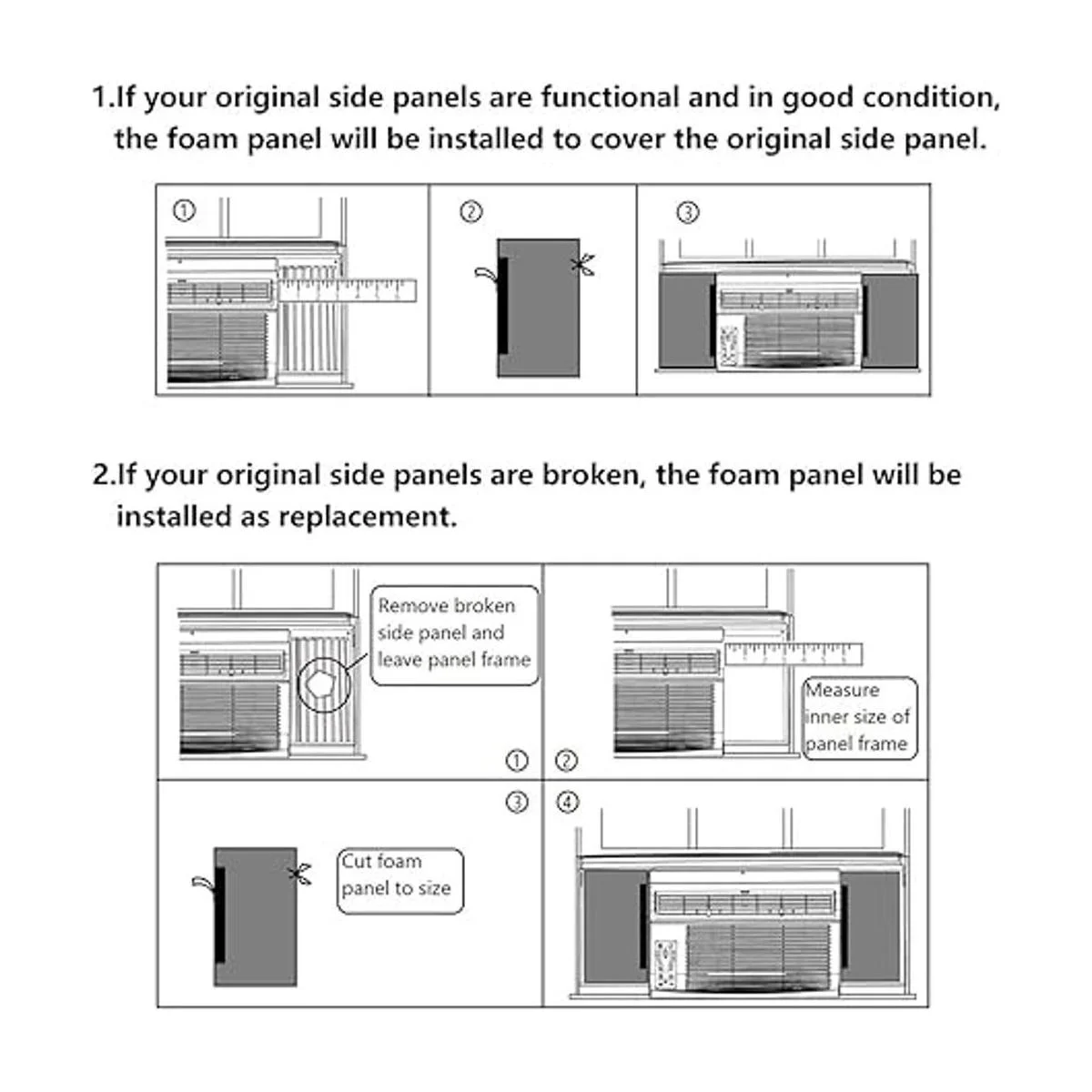 Diseño universal: paneles aislantes laterales de aire acondicionado para cubrir tu panel original roto o trabajar como reemplazo, estos paneles se adaptan a la mayoría de unidades de ventana, 5000 22000 BTU