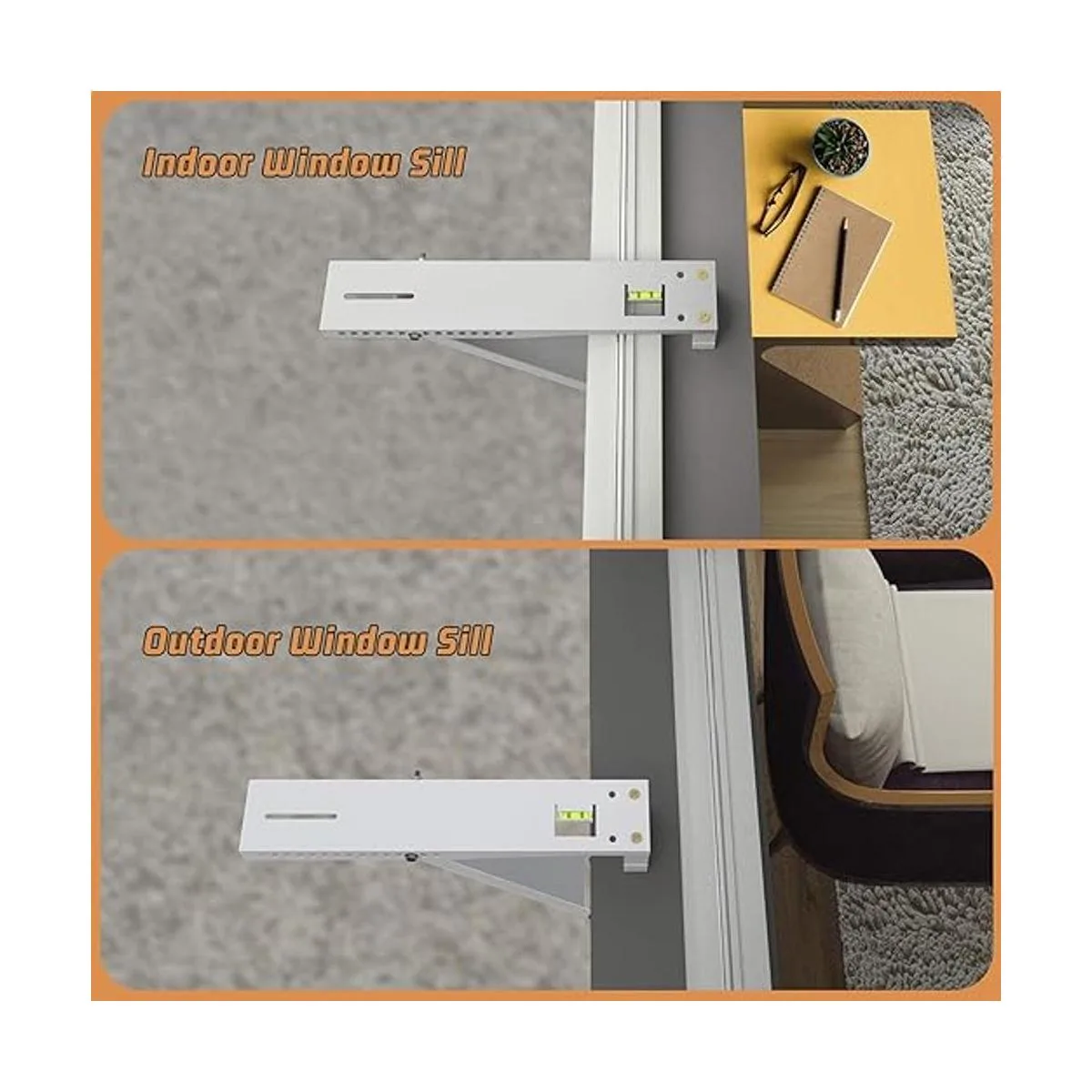 Ampliamente utilizado: se adapta a la mayoría de estilos de ventana, se adapta a grosor de pared de 4 a 13 pulgadas o grosor de alféizar de 2 a 13 pulgadas. El paquete incluye nivel de burbuja para ajustar la posición de la pendiente de montaje