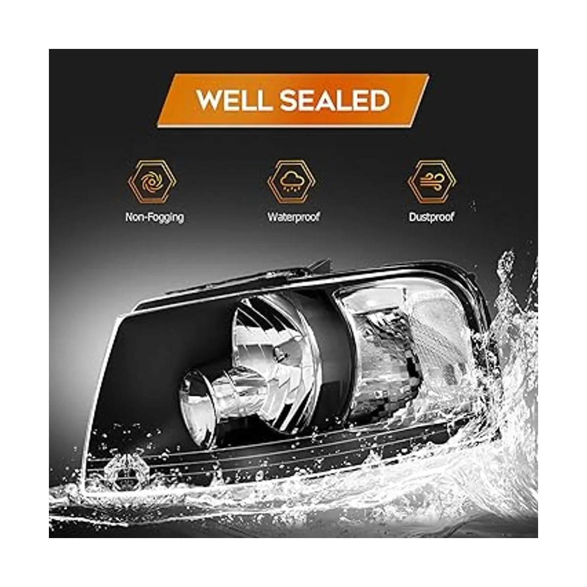 LBRST Conjunto de faros delanteros para Ford para Expedition 20032006, carcasa negra, reflector transparente, lente transparente, lado del conductor y pasajero
