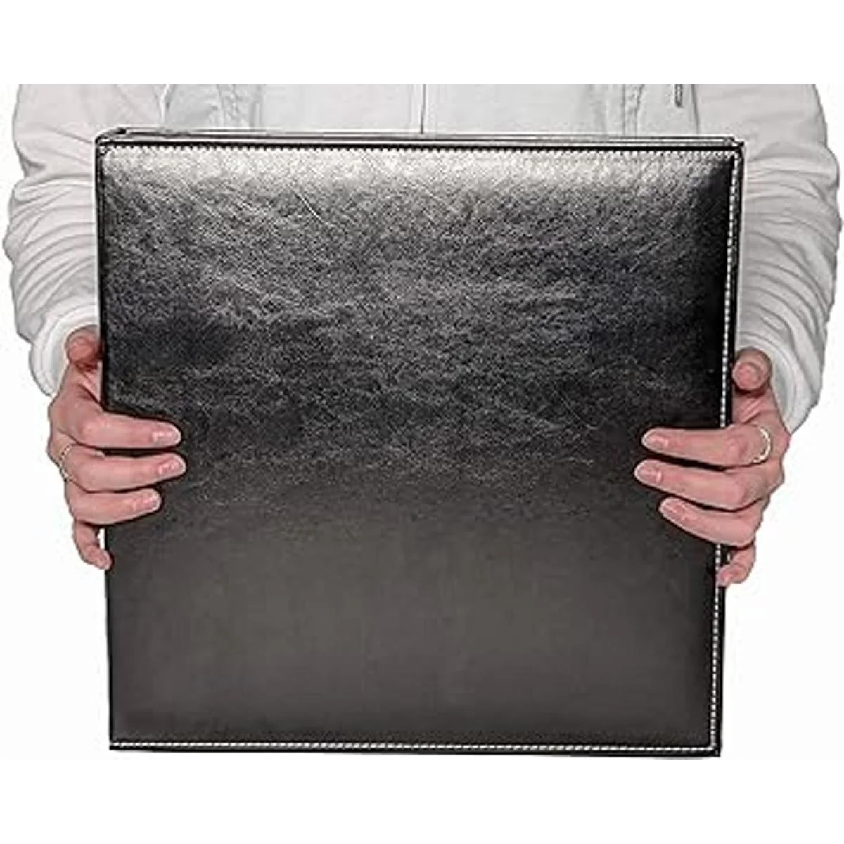 Diseño clásico simple y contemporáneo: la funda exterior de cuero negro vegano con costuras blancas es elegante y duradera que se verá genial en una mesa o en un estante