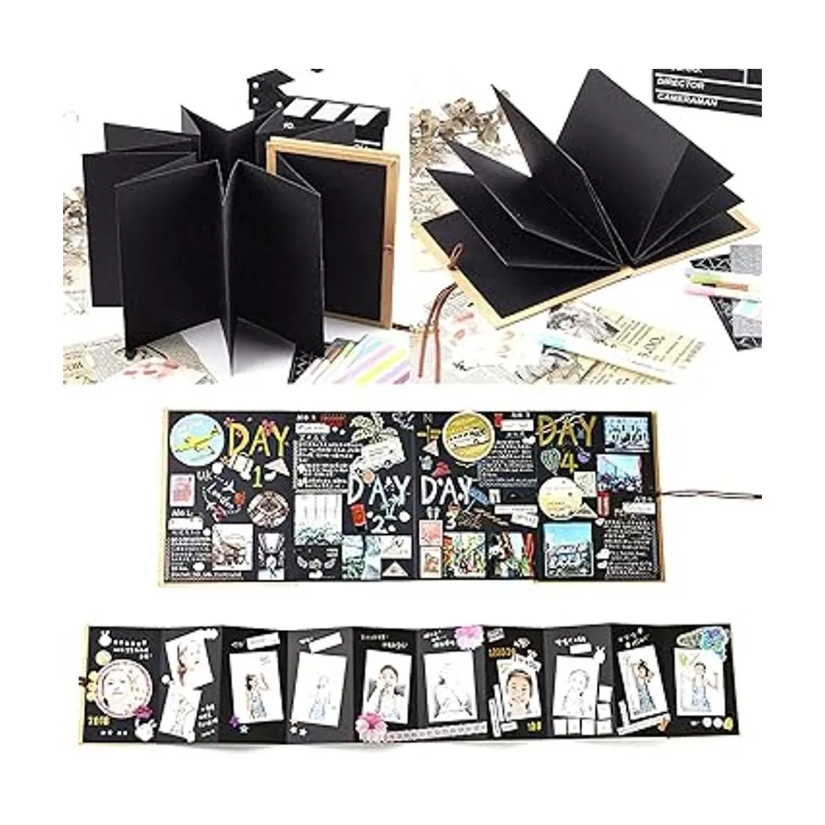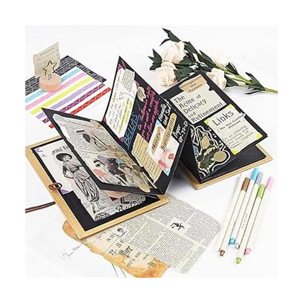 lbumes de recortes de 6 x 8 pulgadas, álbumes de fotos de tapa dura con juego de accesorios de bricolaje, libro de aventuras plegable elástico, libro de recuerdos de colección de fotos de papel kraft para boda, aniversario, día de San Valentín