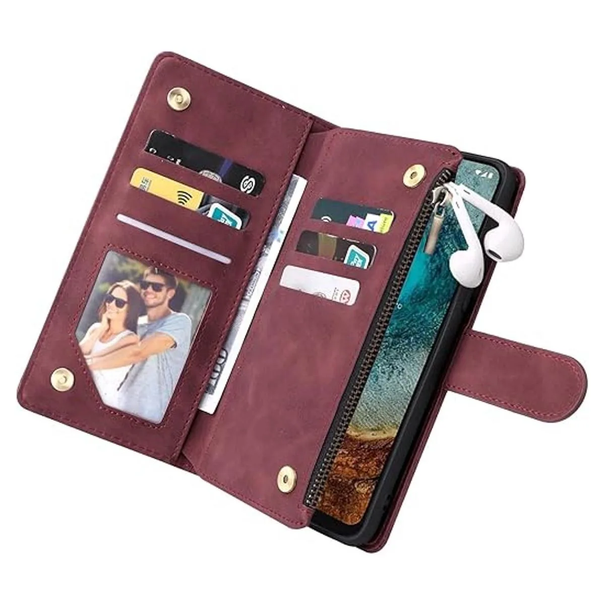 2. Diseño delgado todo en uno: la funda suave en el lado derecho sujeta el teléfono de forma segura con la funda estilo folio que lo protege de golpes y golpes inevitables. El lado izquierdo incluye 6 ranuras para tarjetas y un bolsillo con cremallera cerrado por un imán funda para Nokia X100,