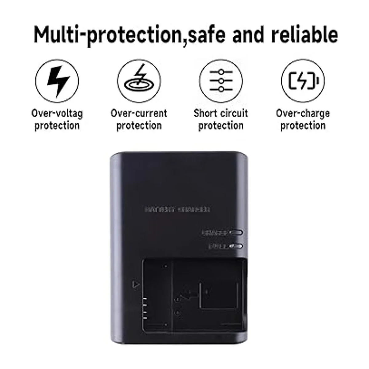 Ventajas del cargador: Carga segura, rápida y eficiente. Diseño ligero para una fácil portabilidad e ideal para cargar baterías de la cámara mientras viajas. Este cargador viene con un cable de alimentación lo suficientemente largo para tu comodidad. Ya no te preocupes por que el cable de alimentación sea demasiado corto.