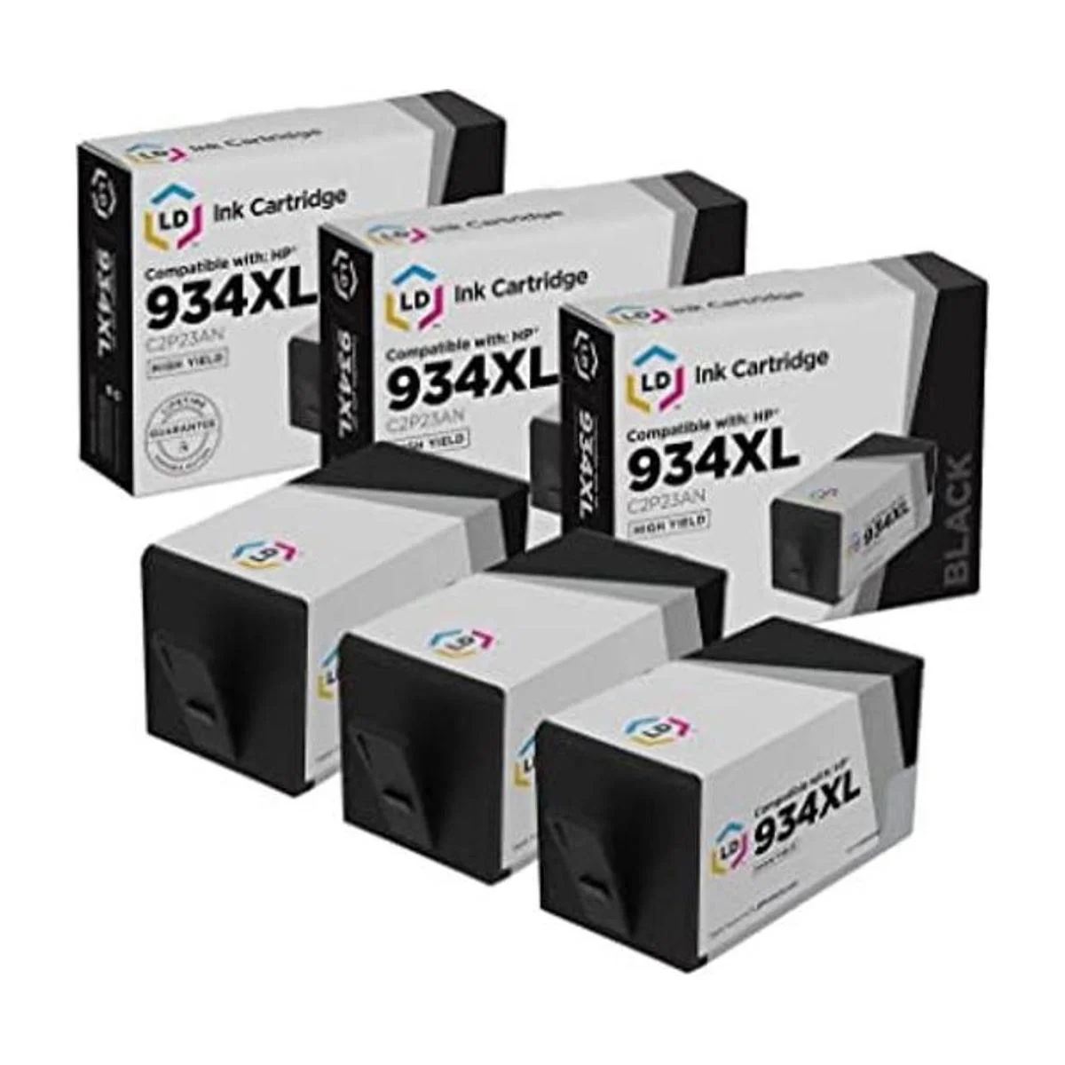 LD Cartuchos de tinta Remanufactured Reemplazos 4pk para HP 934 X L935 X L High Yield 1 C2p23an BLK, 1 C2p24an C, 1 C2p25an M, 1 C2p26an y para Officejet 6812, 6815, Pro 6230, 6830, 6836, Paquete de 3 HY Negro