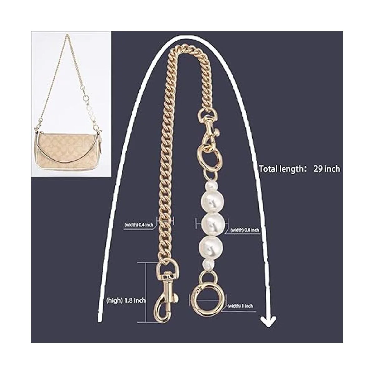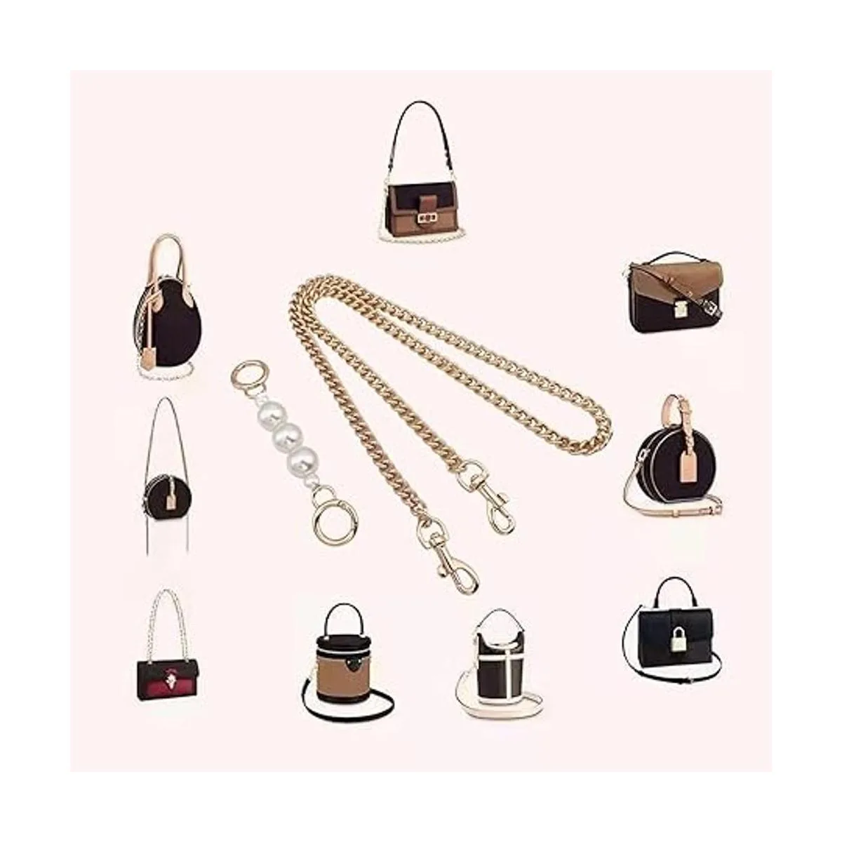 LDKJ DIY resistente con cuentas de imitación de perlas para bolso, correa para bolsa, dijes para bolsa, cadena de repuesto, accesorios de decoración correas de repuesto para bolsos cadenaperla cierre de oro poco profundo