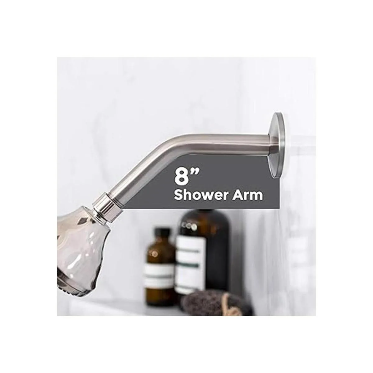LDR Brazo de ducha y brida de 8 pulgadas, construcción de acero inoxidable, brazo de extensión de cabezal de ducha, acabado de níquel cepillado