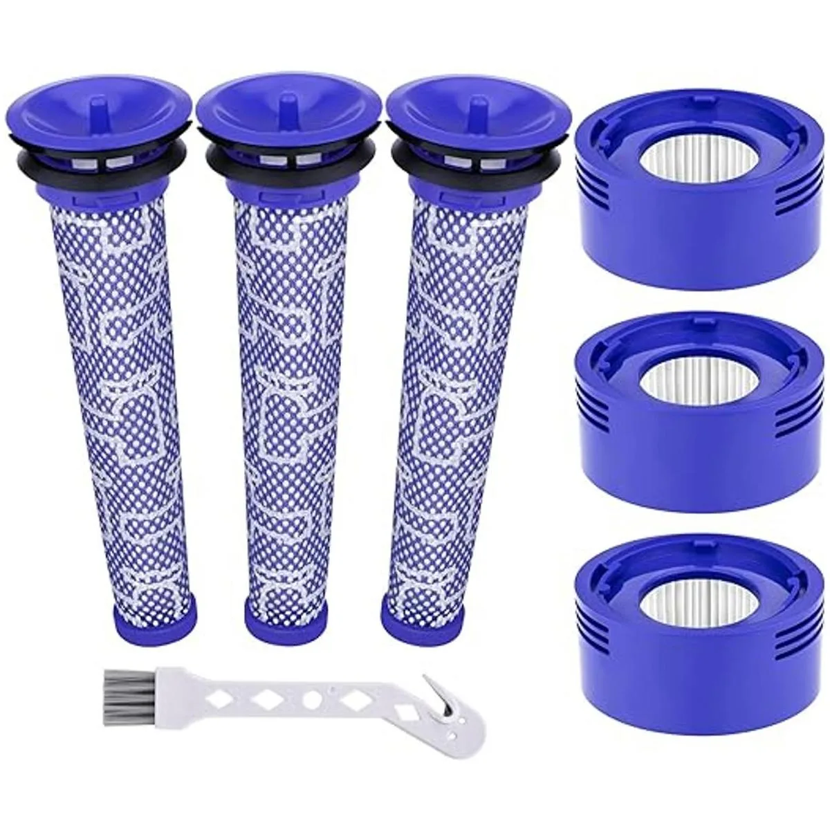 Leadaybetter Filtro de vacío de repuesto para Dyson V7 V8 Animal Absolute Motorhead Stick limpiador inalámbrico de aspiradora, 3 postes y 3 prefiltros, comparado con la parte 96566101 y 96747801