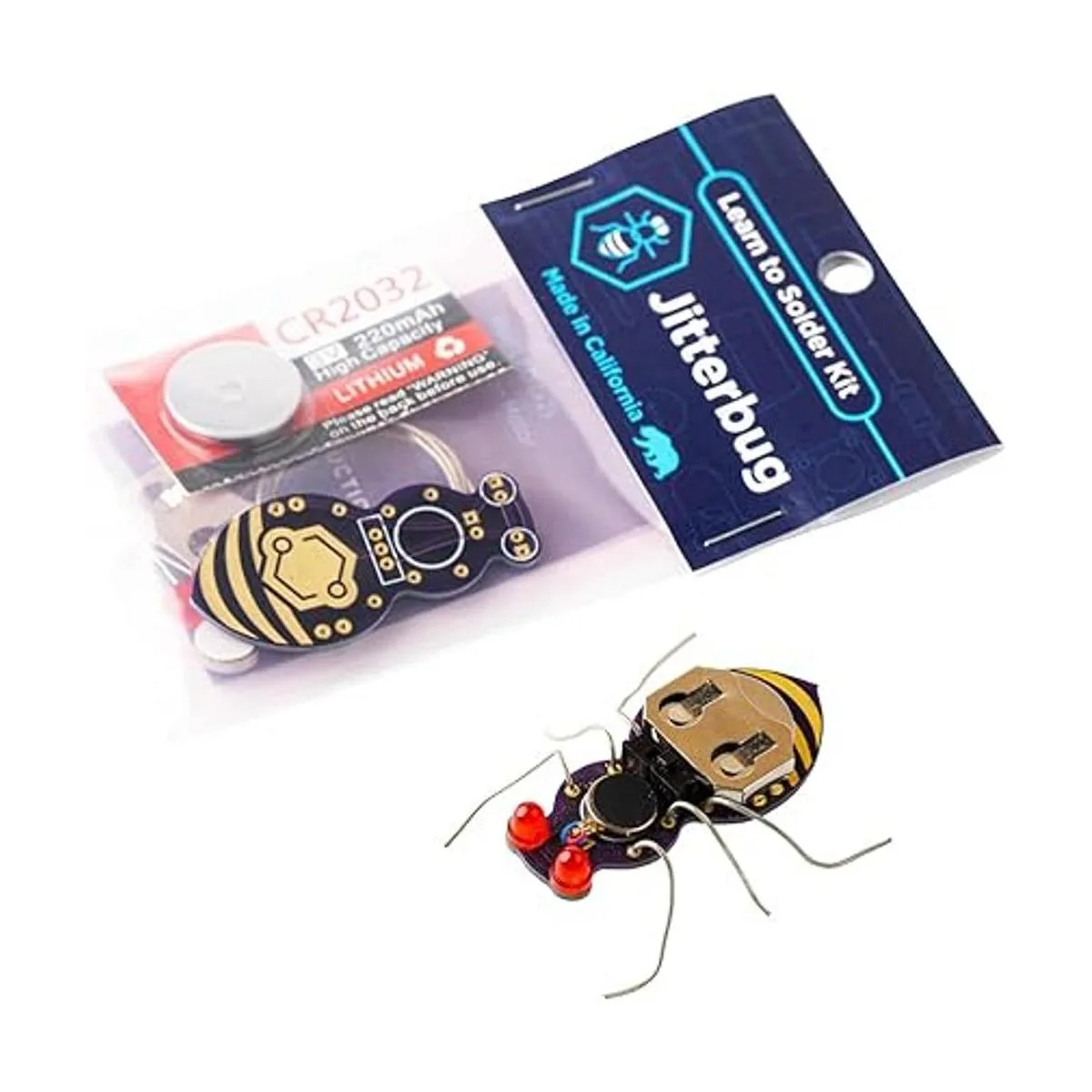 Kit de motor interactivo: aprende a soldar de una manera única, atractiva, divertida y alcanzable El kit de práctica Jitterbug Learn to Solder está diseñado para principiantes. Este kit con forma de insectos incluye un motor de vibración que te permite dar vida a tu creación Escucha zumbido y mira cómo se mueve como algo real.
