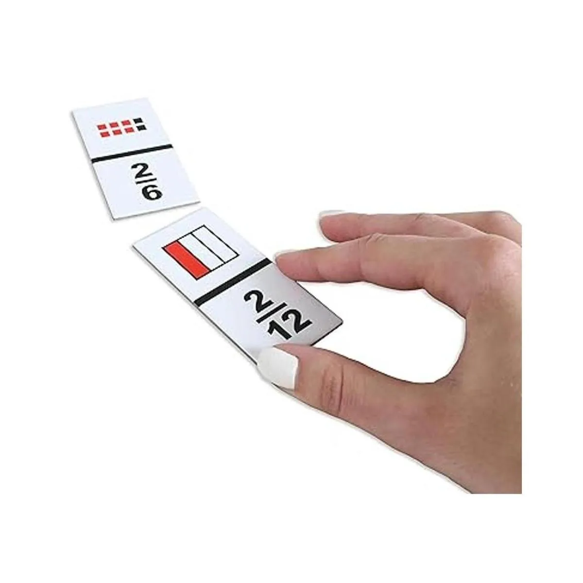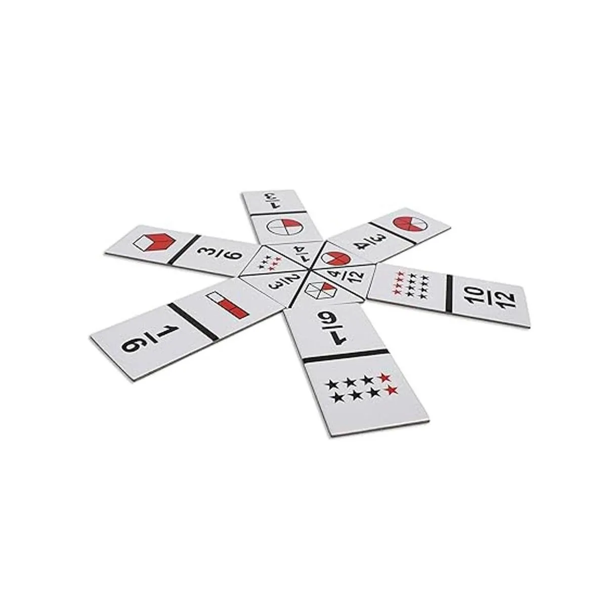 Aprendizaje versátil: seis juegos de grupo y solitario ofrecen experiencias en el reconocimiento de piezas fraccionadas, coincidiendo fracciones equivalentes y construcción de sumas de uno. Los 49 dominó y el tablero hexagonal incluyen imágenes y números fraccionales con denominadores que van desde 2 a 12