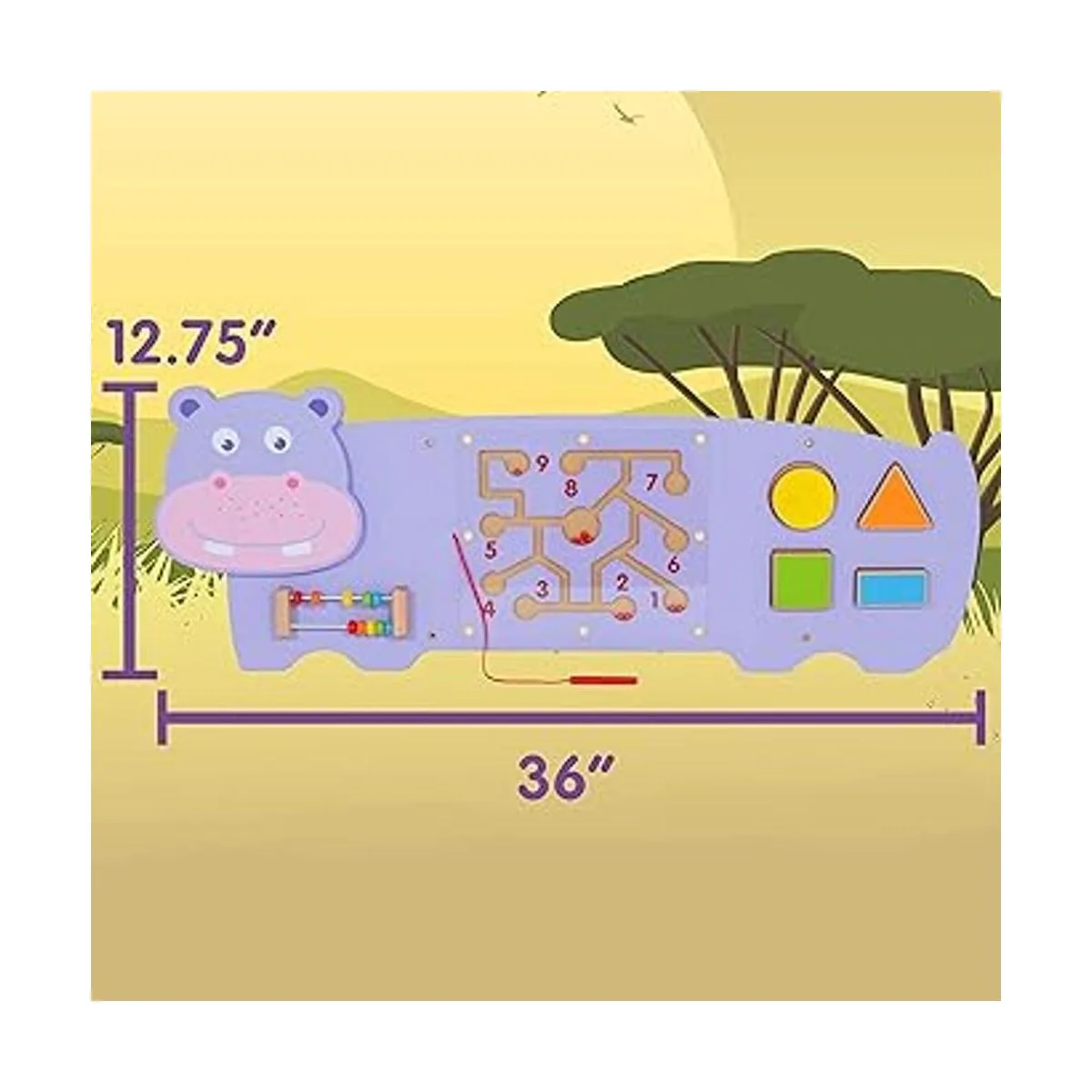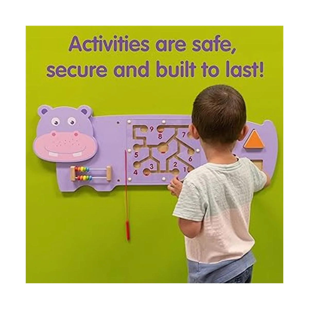 LEARNING ADVANTAGE Panel de pared de actividad hipopótamo 18 años Centro de actividades para niños pequeños Juguete de pared Decoración de tablero ocupado para dormitorios, guarderías y áreas de juego