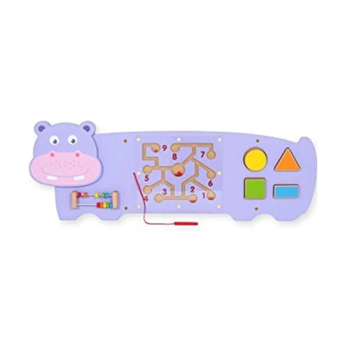 Convierte las paredes en un divertido safari: este juguete de pared de hipopótamo de madera cuenta con un ábaco, laberinto de números y rompecabezas de clasificación de formas.