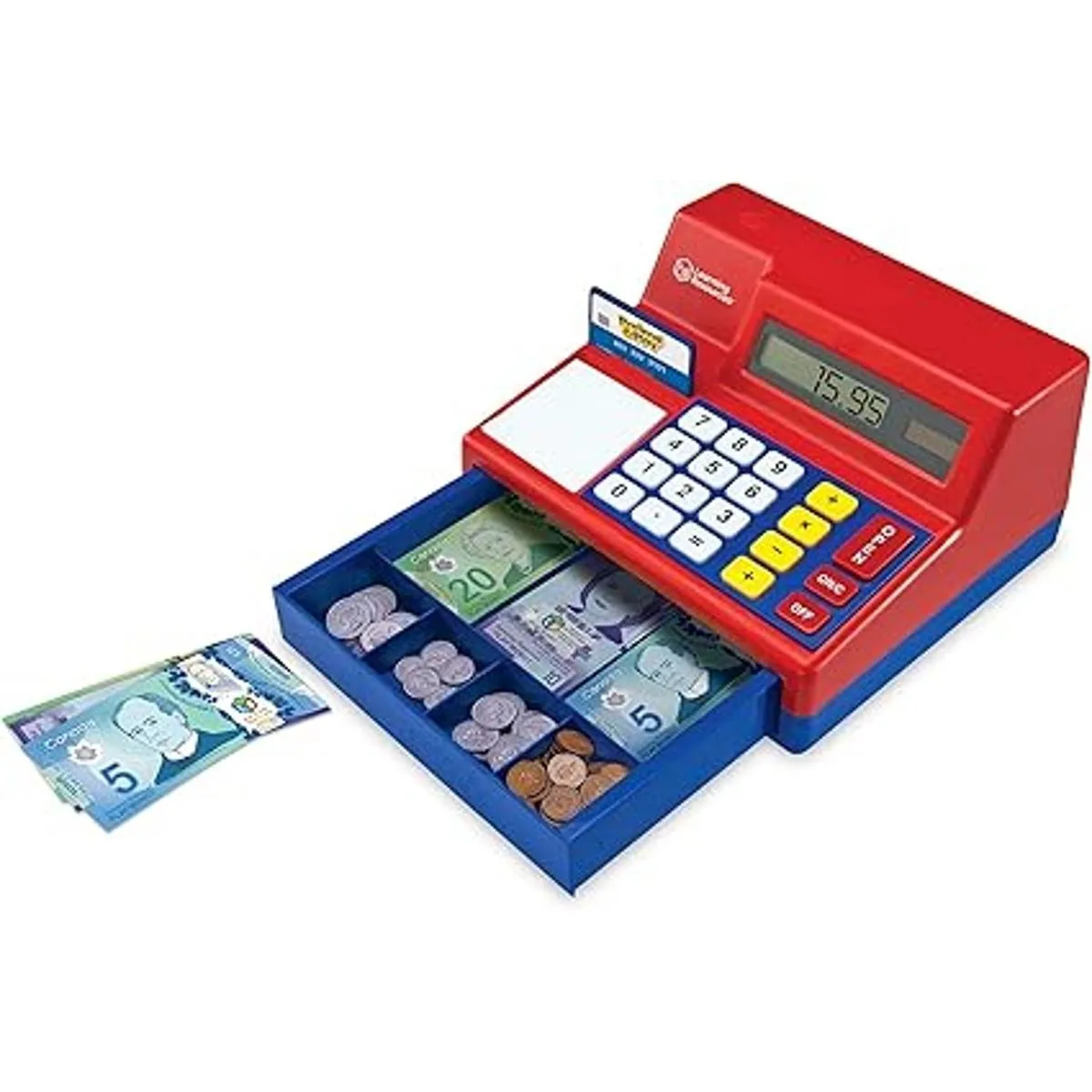 Learning Resources Caja registradora de calculadora de simulación y juego con moneda canadiense