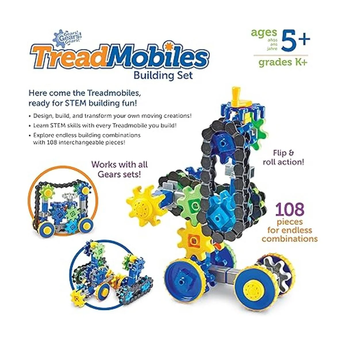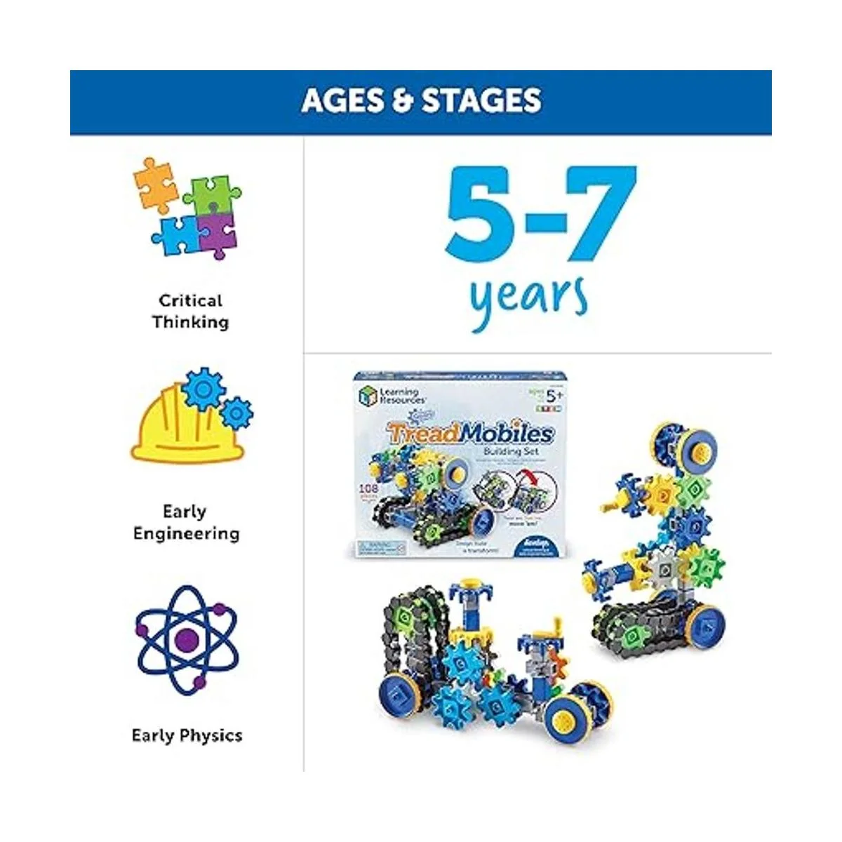 Learning Resources Gears Gears Gears Gears Juego de construcción de bandas de rodadura, juguetes STEM, desarrolla habilidades de ingeniería tempranas, 108 piezas, a partir de 5 años