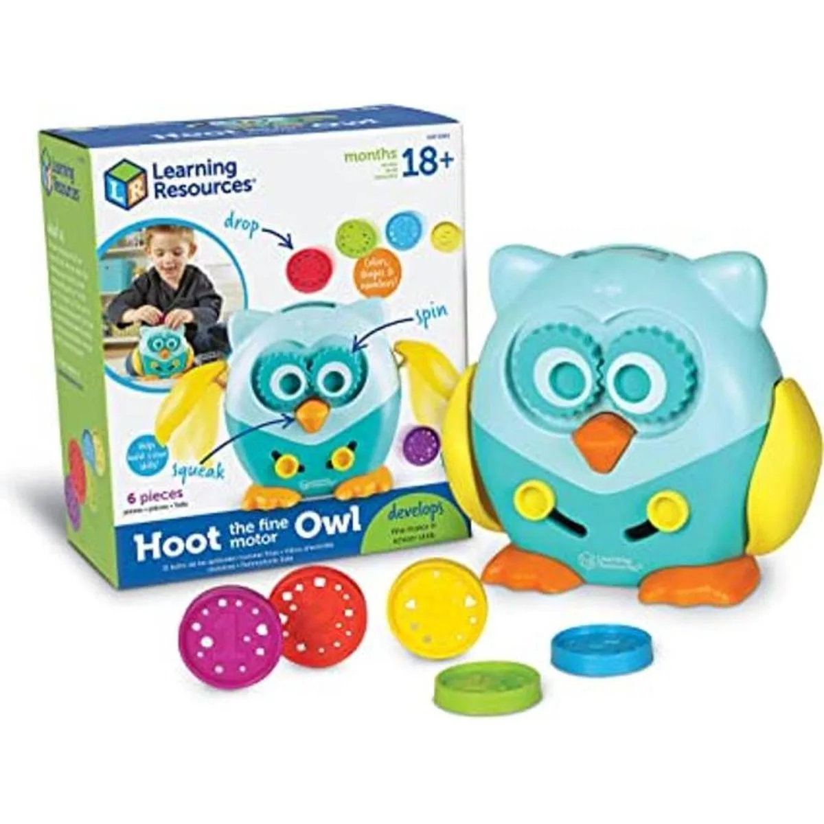 Learning Resources Hoot the Fine Motor Owl 6 piezas, a partir de 18 meses, juguetes de aprendizaje para niños pequeños, juguetes educativos para niños pequeños