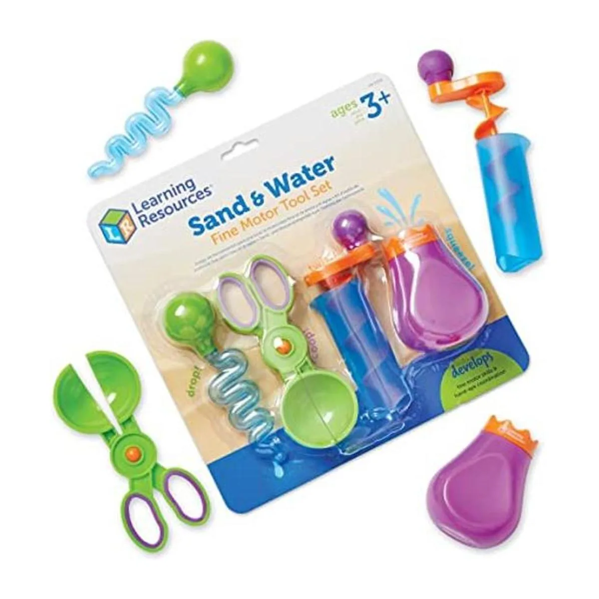 Learning Resources Juego de motores finos de arena y agua, 4 piezas, juguetes de aprendizaje para niños pequeños, juguetes educativos para niños pequeños, juego de herramientas de motor fino, juguete sensorial, juguetes de mesa de arena