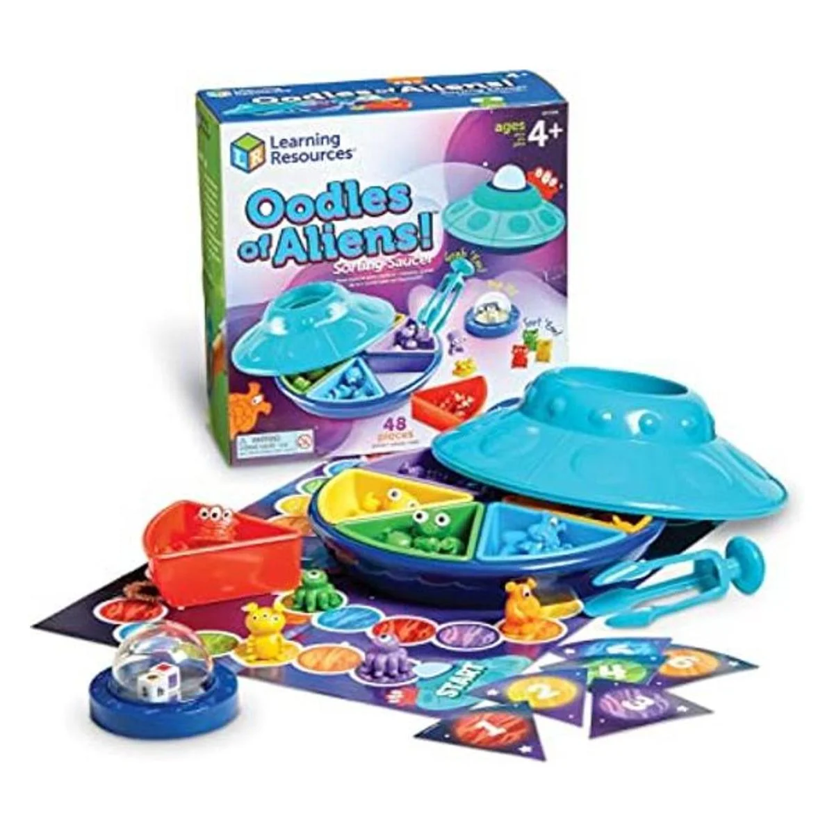 Learning Resources Oodles of Aliens Platillo clasificador, habilidades motoras finas, juguetes de conteo y clasificación, juegos preescolares, juguetes educativos, 48 piezas, a partir de 4 años