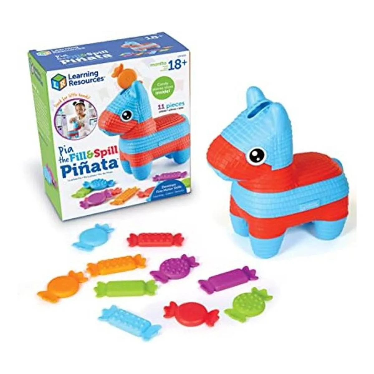 Learning Resources Pia The Fill Spill Piñata, juguetes para niños pequeños, preescolar, habilidades motoras finas, juguetes educativos, 11 piezas, edad 18 meses