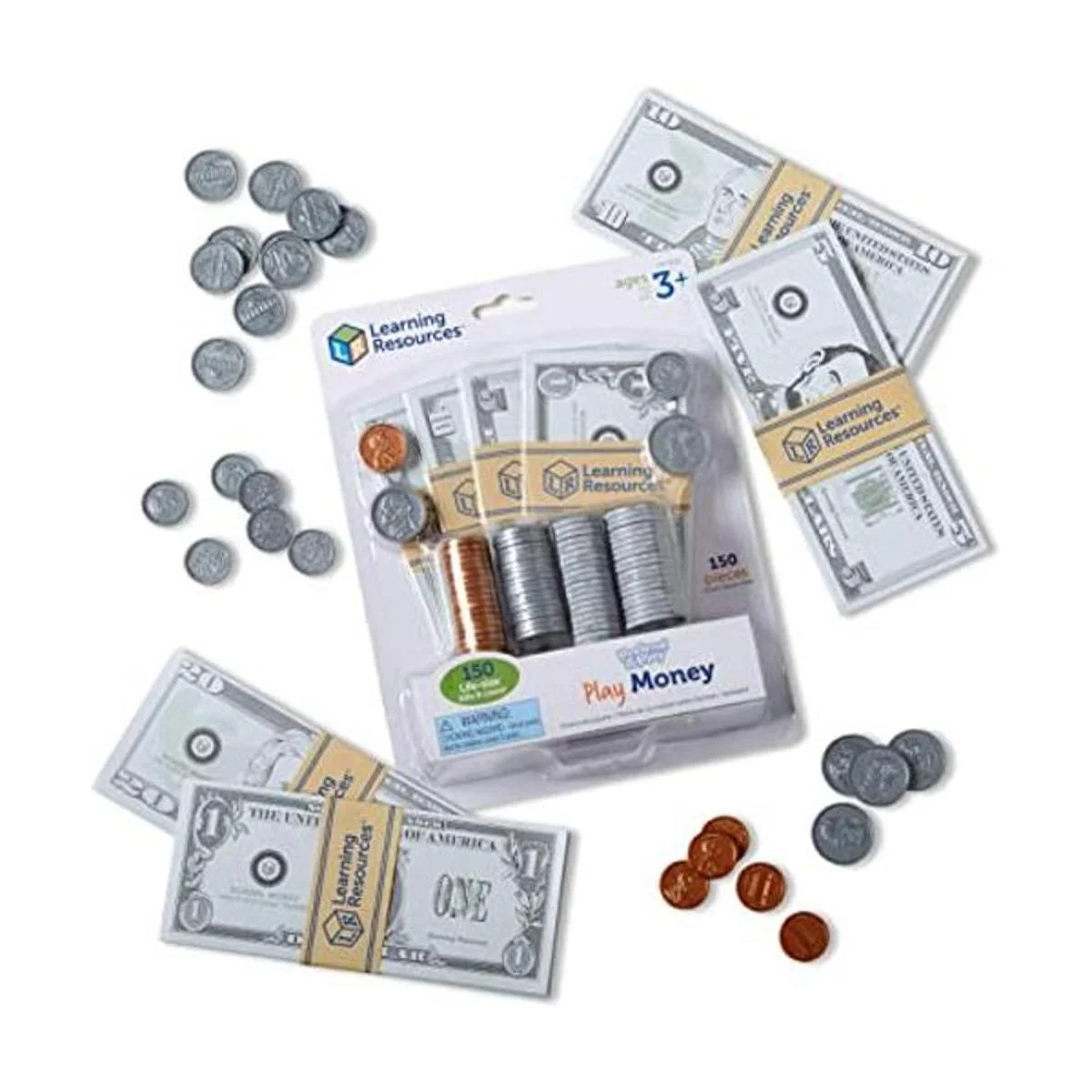 Learning Resources Pretend Play Money 150 Pieces, Ages 3 Play Money for Kids, Pretend Money for Kids, Play Money Set, Money and Banking Play Toys, Toddler Learning Toys