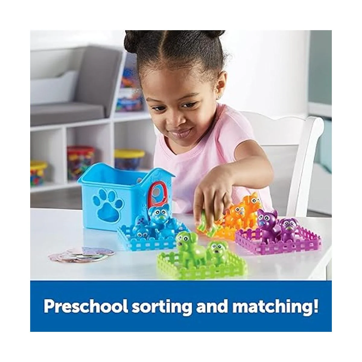 Learning Resources SortEmUp Cachorros de 28 piezas, a partir de 3 años, juguetes educativos para niños pequeños, juguetes preescolares, juguetes de aprendizaje para niños pequeños