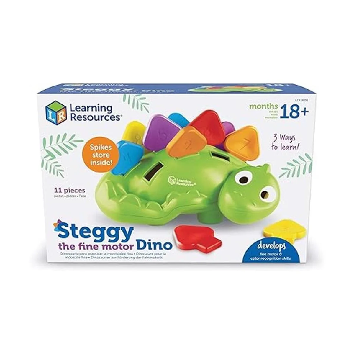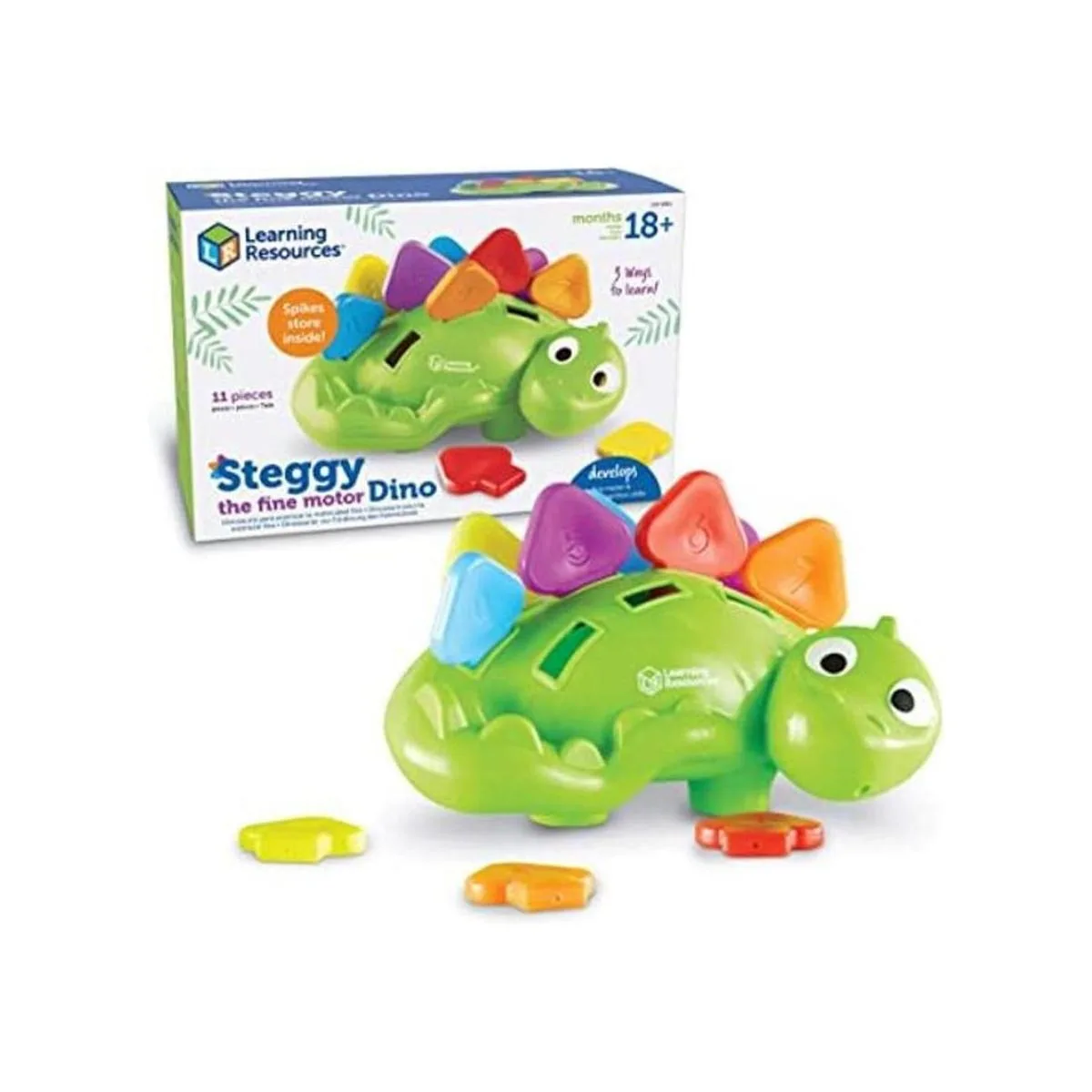 Learning Resources Steggy the Fine Motor Dino 11 piezas, a partir de 18 meses, juguetes de aprendizaje para niños pequeños, juguete de motor fino y sensorial, juguetes Montessori para niños pequeños, juguetes de dino, juguetes preescolares
