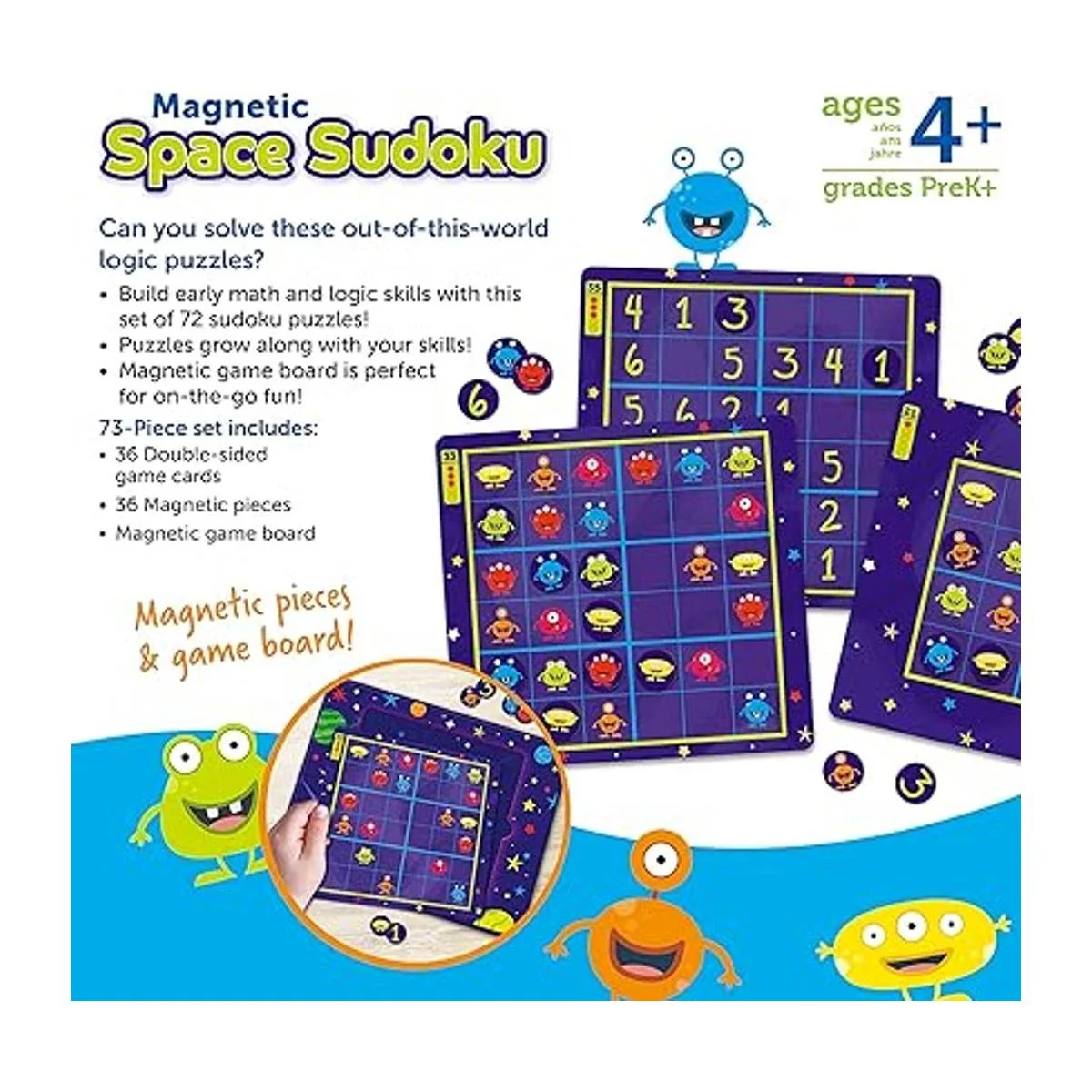 Learning Resources Sudoku Magnetic Space 72 piezas, juegos espaciales para niños a partir de 4 años, Sudoku para niños