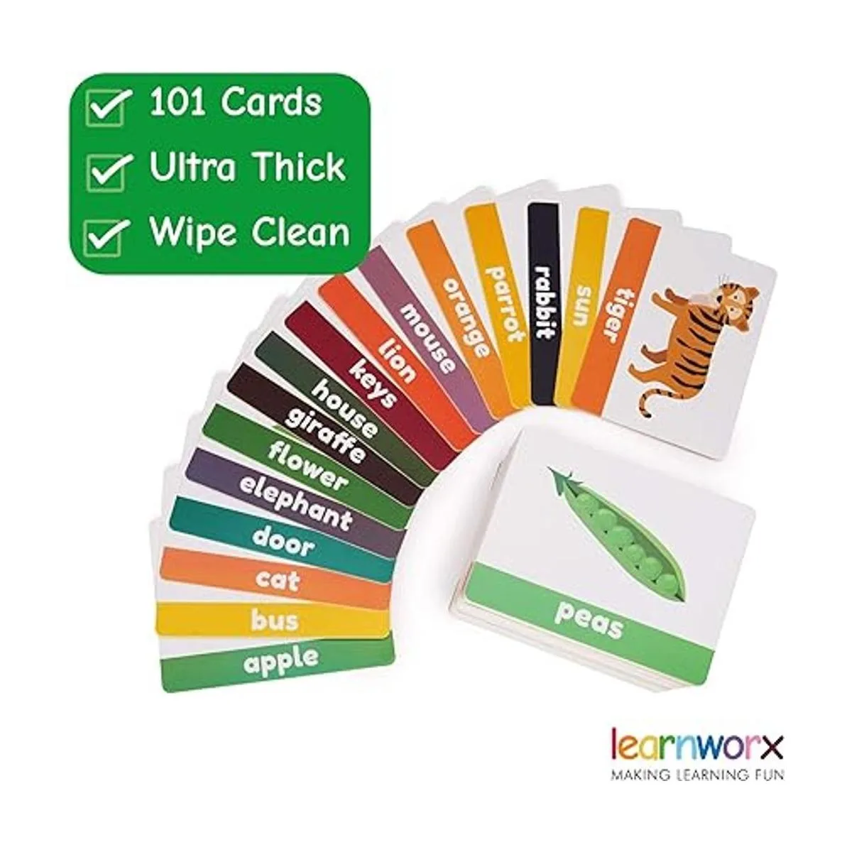Learnworx Tarjetas didácticas para niños pequeños, 101 tarjetas, 202 lados, para aprender objetos, números y juegos, gran valor, aprendizaje divertido y tarjetas educativas.