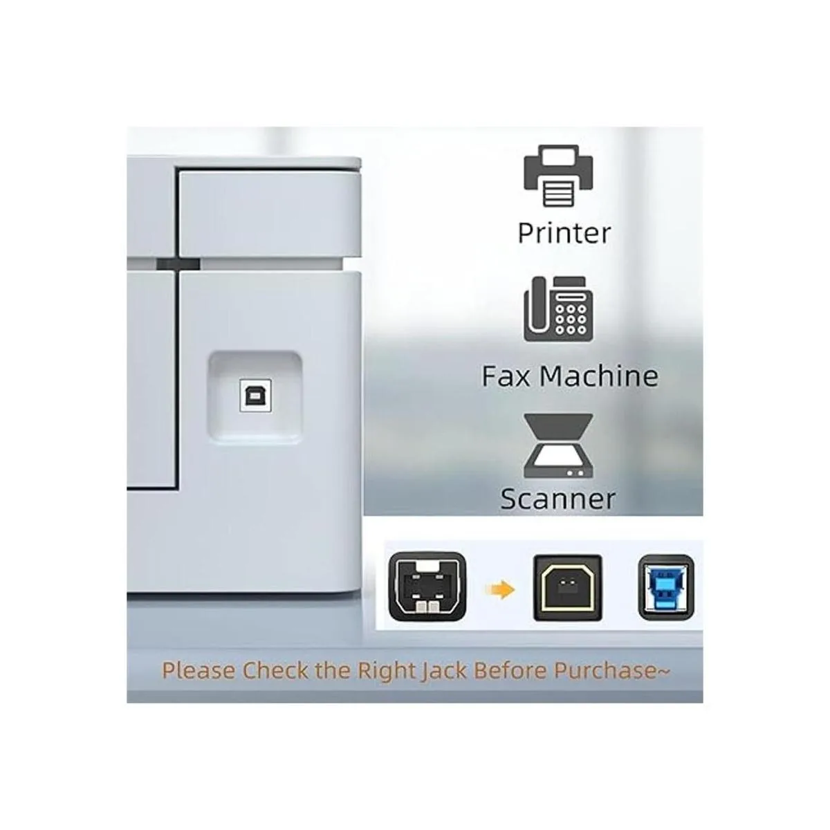 This printer cable great work with your printer, fax machine, decoder, Altimeter, Scanner, Multifunctional integrated machine, electronic organ, 3.5 inch hard disk case and other devices with uab b connector.