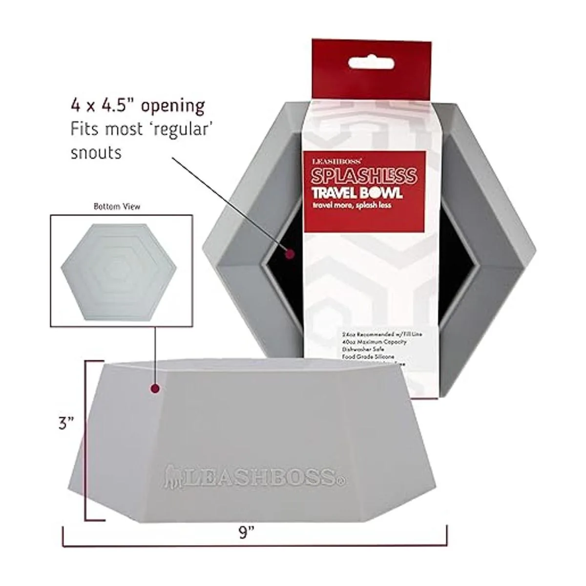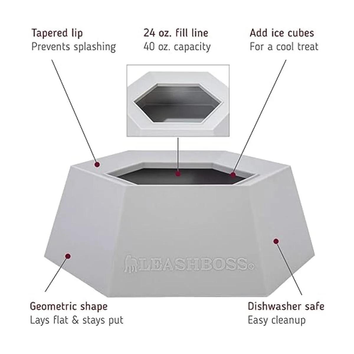 Leashboss Cuenco de agua para perro de viaje sin salpicaduras, gran capacidad de 40 onzas, sin derrames, plato de silicona portátil para coche