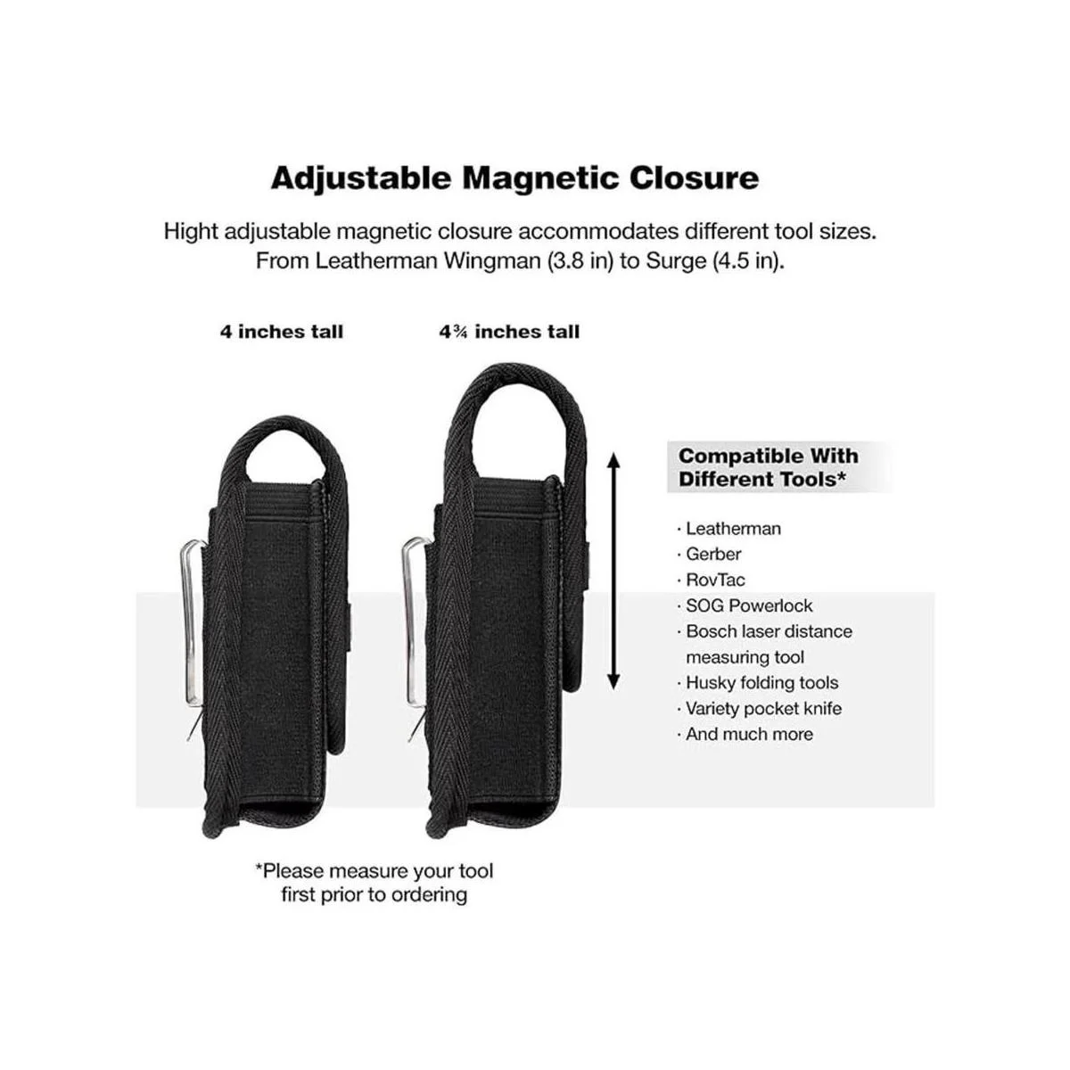 Altura ajustable: ajusta fácilmente la cubierta para adaptarse a la herramienta de 4 a 4.75 pulgadas de alto plegado. Compatible con Leatherman Wingman, Wave, Charge, Surge, Skeletool, Super Tool y otras marcas como Victorinox Swiss Army, RoverTac, Gerber. Comprueba el modelo y las tallas antes de realizar el pedido.