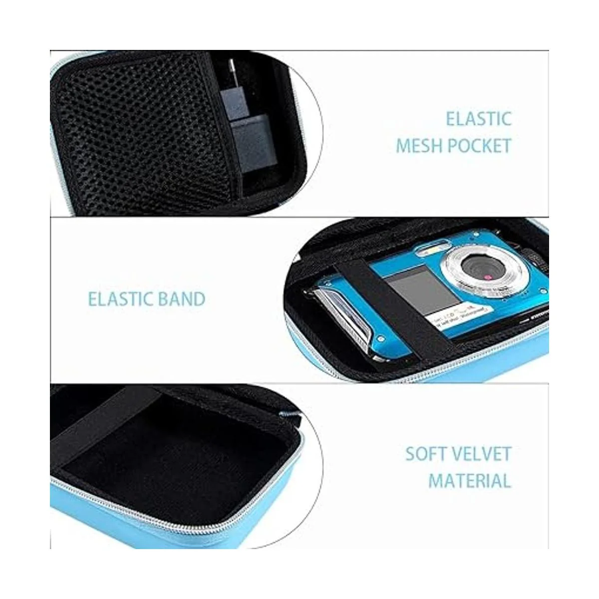 Material de alta calidad: utilizando material de carcasa rígida EVA de alta calidad, la cámara digital impermeable se puede almacenar de forma segura con otros juguetes y otros artículos. Cremallera de alta calidad, tirador suave y no se atasca.